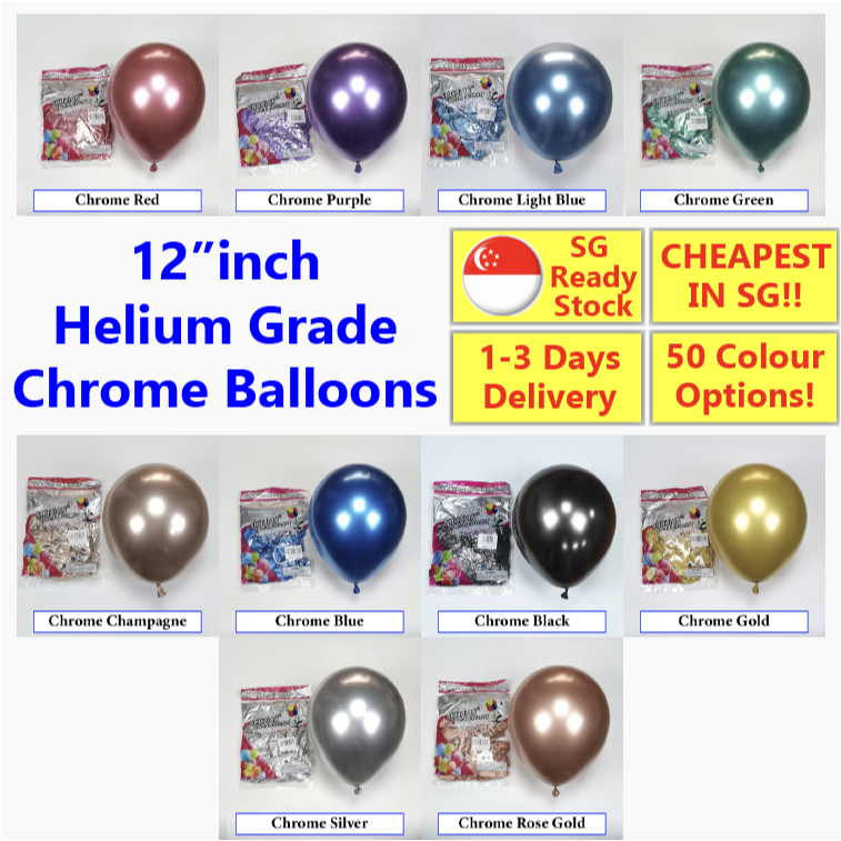 [SG Wholesale] 12" Inch Chrome Metallic Latex Party Balloon (Helium Grade) #Metallic #Chrome Balloon