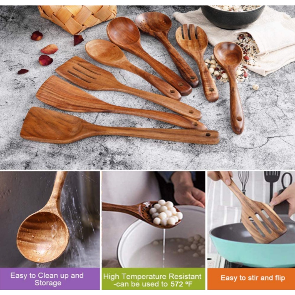 {SG} Wood Spatula Food-grade Material Wooden Cooking Utensil for Nonstick Pan Spatula Spoon Colander Salad Fork Utensils