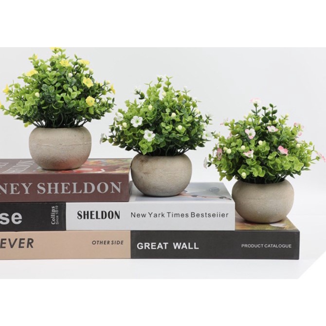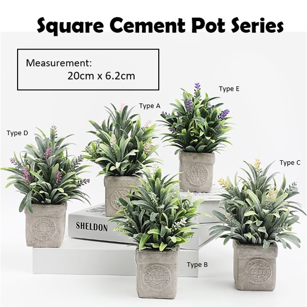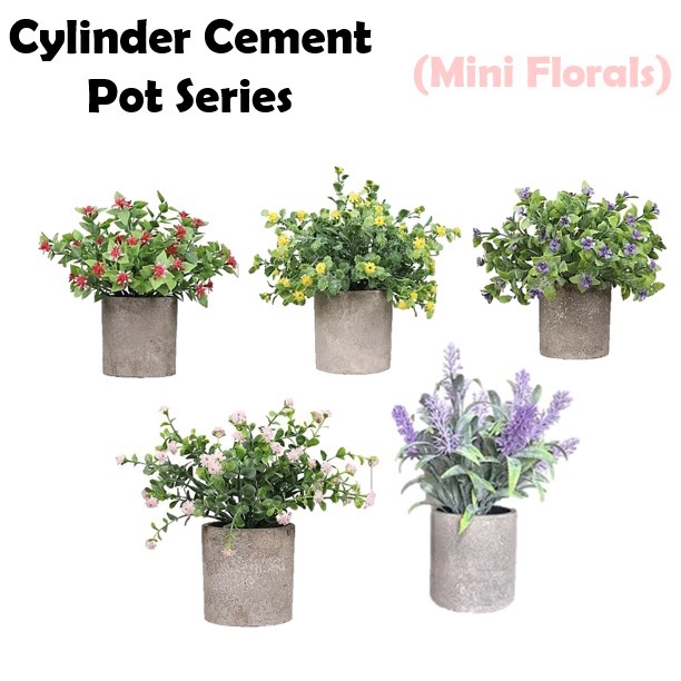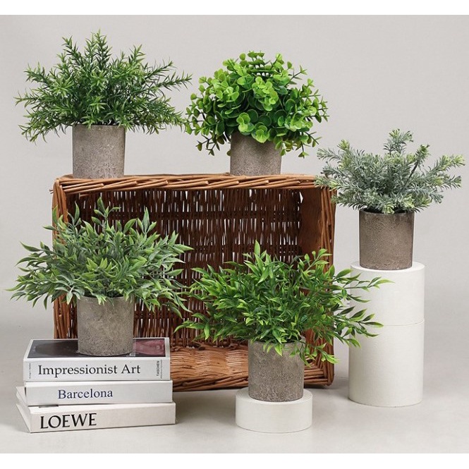 [SG seller] Mini Table Plant Cement Pot Artificial Plant Office Cute Decoration Houseplants Rosemary Small Pot Vase
