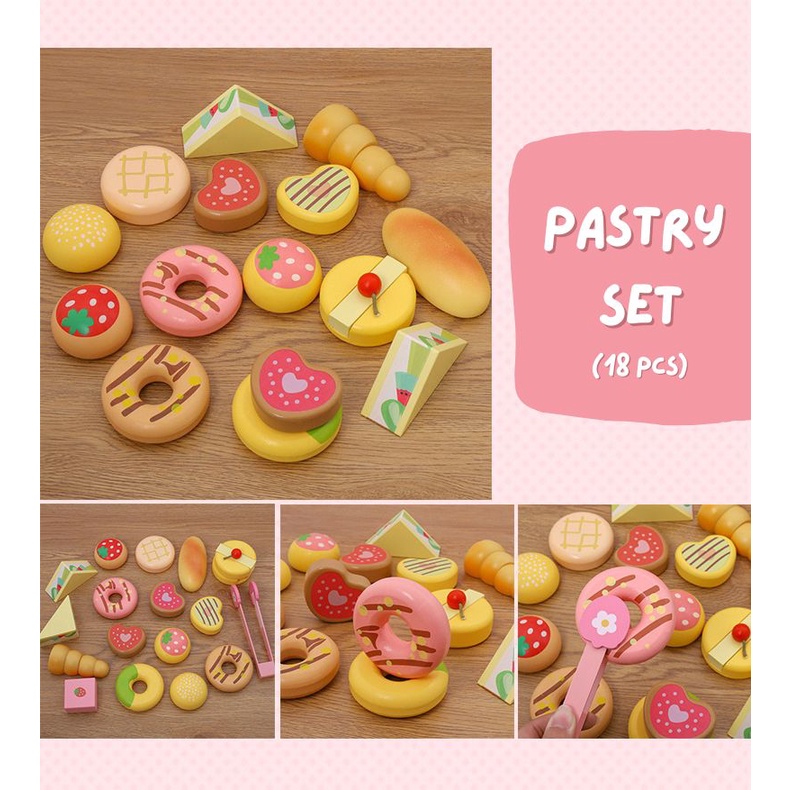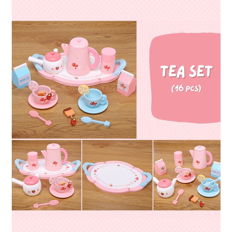 [SG stock] Wooden Tea & Dessert Pastry set | Kids Pretend play toy | Tea party