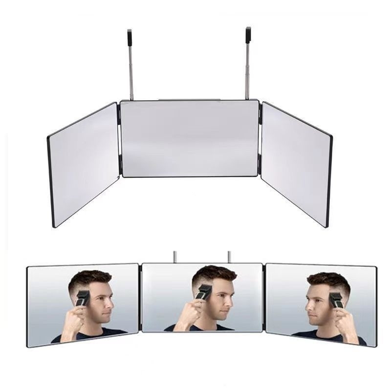 [SG stock] self cut mirror 360 mirror 3 way mirror Tri-fold Mirror Rear Foldable Full Body Hanging Retractable Makeup Mirror Haircut Mirror Back Head Dormitory Desktop IMRS