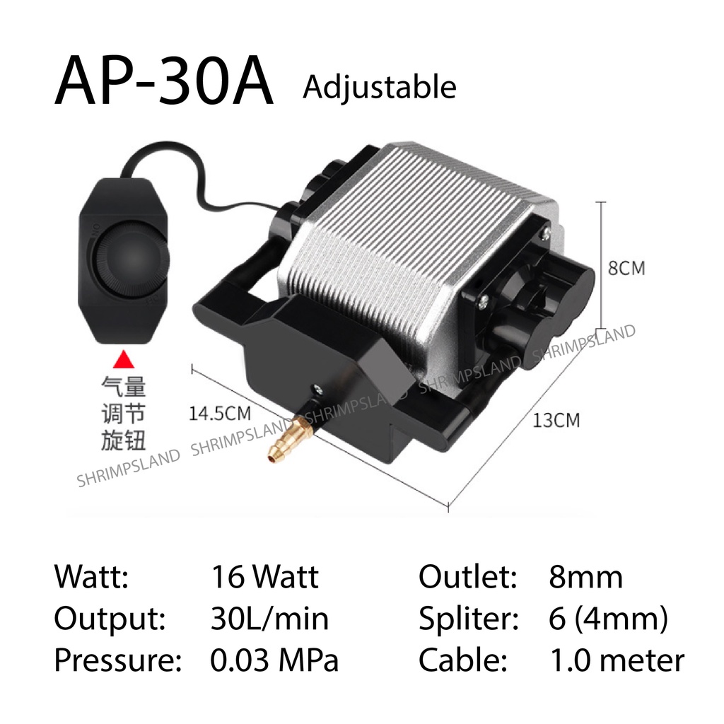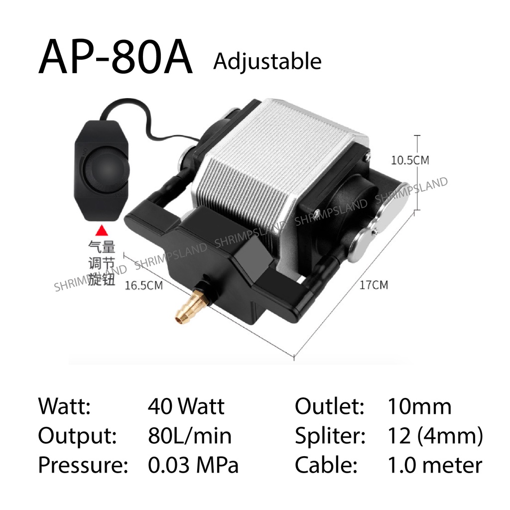 [SHRIMPSLAND] Aquarium AQUABLUE Air Pump AP-10 AP-20 AP-30 AP-30A AP-50A AP-80A Silent Powerful Fish Pond
