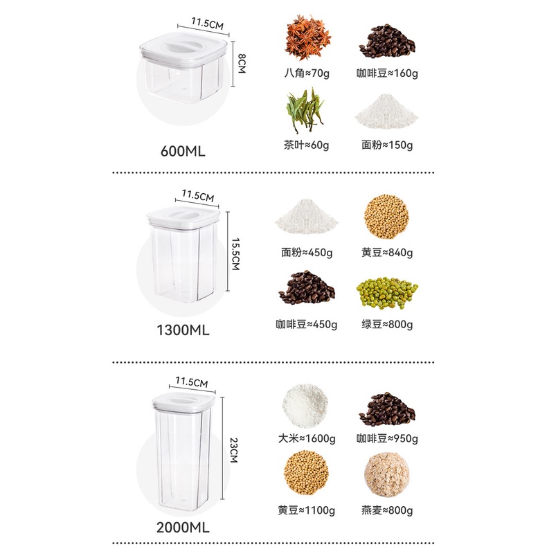 [SO} Airtight Food Container Storage Container with Vacuum Lock Sealed Lid 600ML / 1300ML / 2000ML