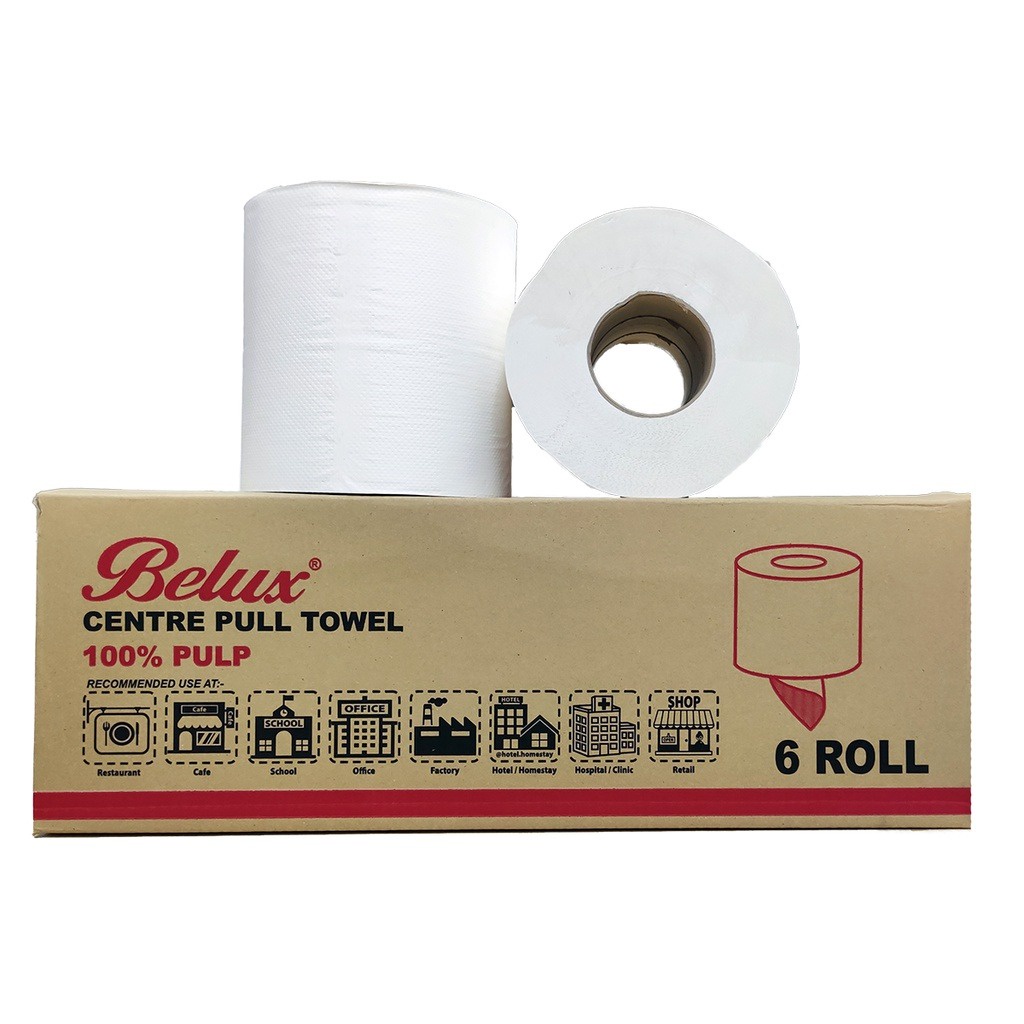 [SO] Belux Center Pull / Centre Flow Towel 100% Pulp - 300M / Roll, 6 Rolls in 1 Carton Hand Paper Towel Food Factory