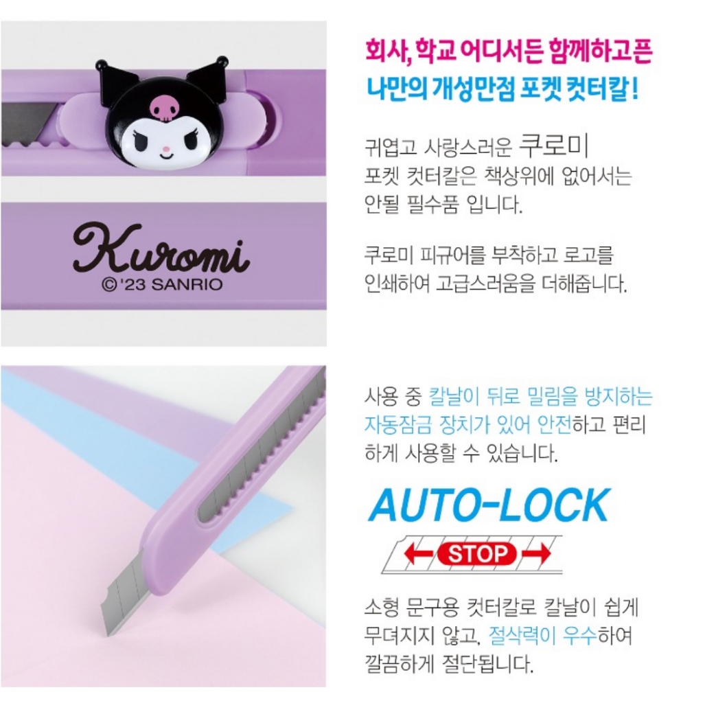 [Sanrio] Pen Knives & Paper Cutters Opener Office Stationery Portable Utility Knife Packing Box Hello Kitty, Kuromi Made in Korea
