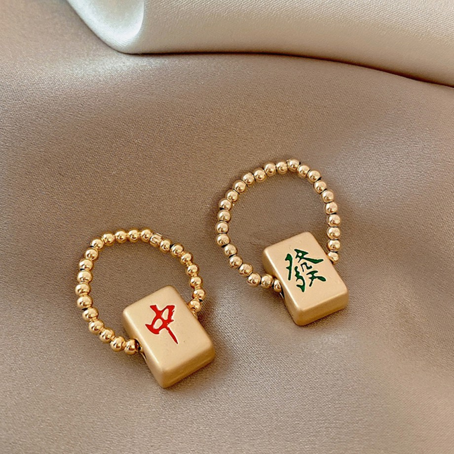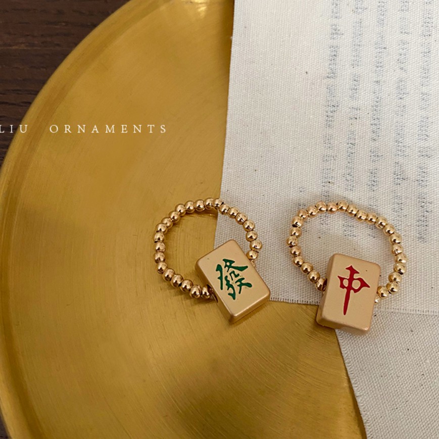 【Earrings Addict】CNY Mahjong Ong Ong Ring Chinese New Year Must Have Huat Huat Rings 镀真金 麻将戒指 发财红中戒指 抖音同款