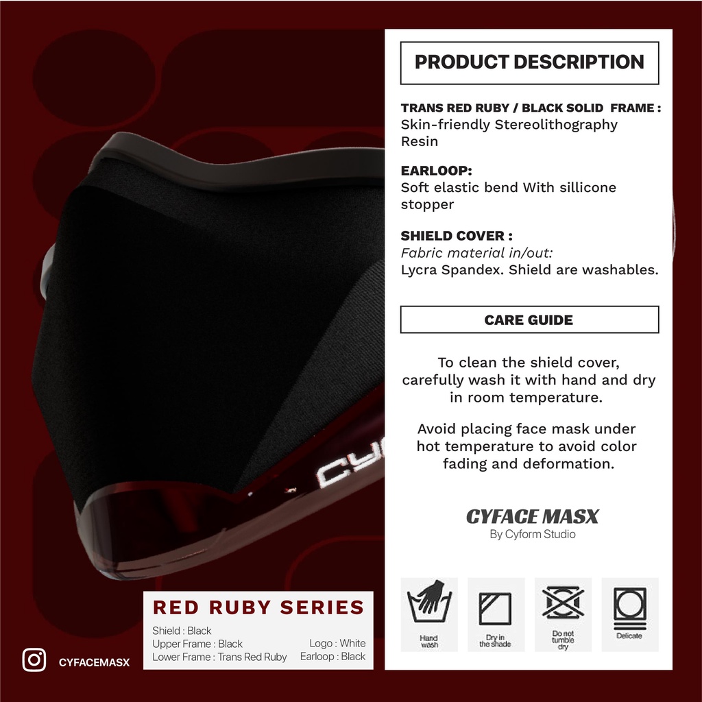 [Shop Malaysia] ruby red tranparent cyform 3d print cyfacemasx viral techwear face mask cfx01