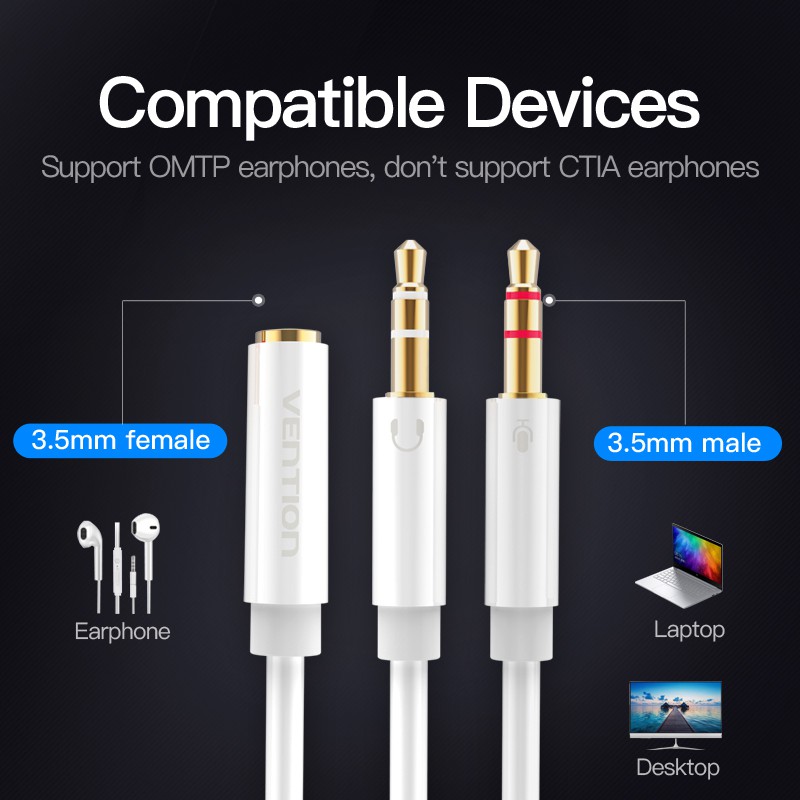 [Shopee Choice] Vention Audio Splitter Headphone Adapter 3.5mm Aux Cable 1 Female to 2 Male Mic Y Splitter Headset to PC Adapter
