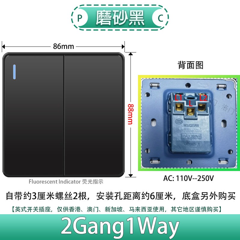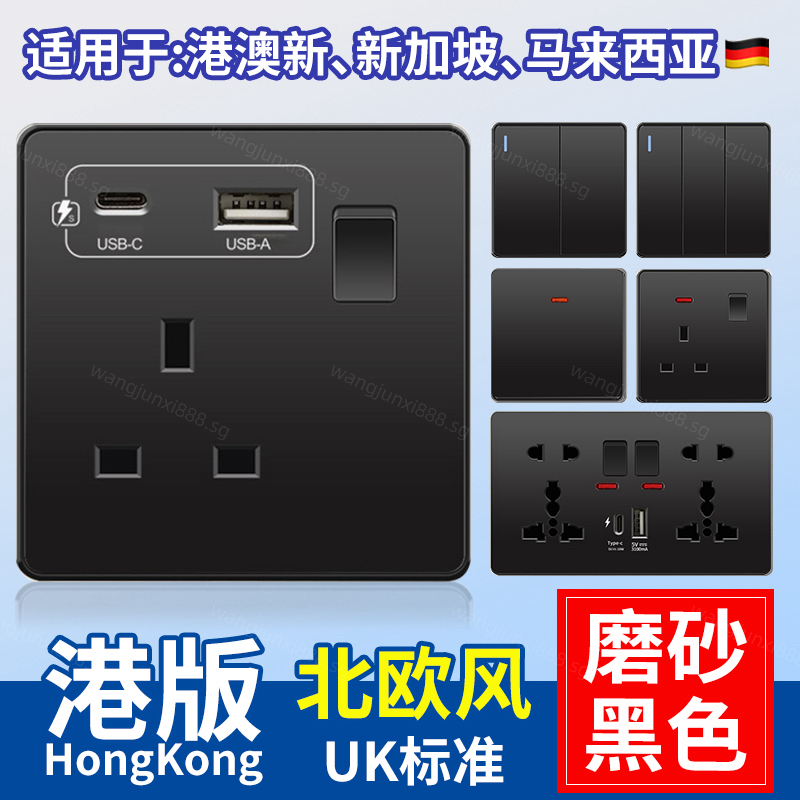 [Stock] 13A Power Outlet, USB+C(18W) Receptacle & Wall Mount 1 2 3 4gang 1/2way Switch 15A 20A 45A Heater/Air Conditioner/Doorbell Switch [Black]