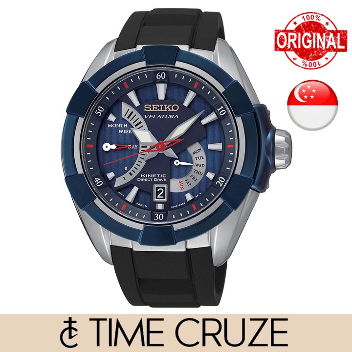 [TIME Cruze] Seiko SRH017P2 Velatura Kinetic Direct Drive Stainless Steel Case Silicon Strap Blue Dial Men Watch