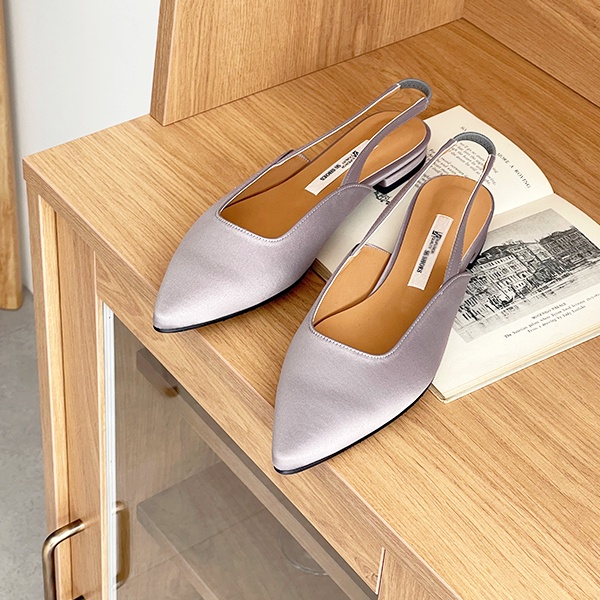 [The Kelly Studio] Slingback Comfortable Flat 1cm Satin Silky Shoes