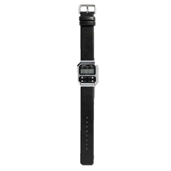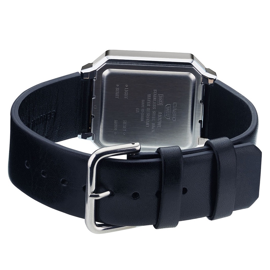 [Time Cruze] Casio A100 Black Leather Strap Quartz Digital Tribute Alien Men Watch A100WEL-1ADF A100WEL-1A A-100WEL-1A