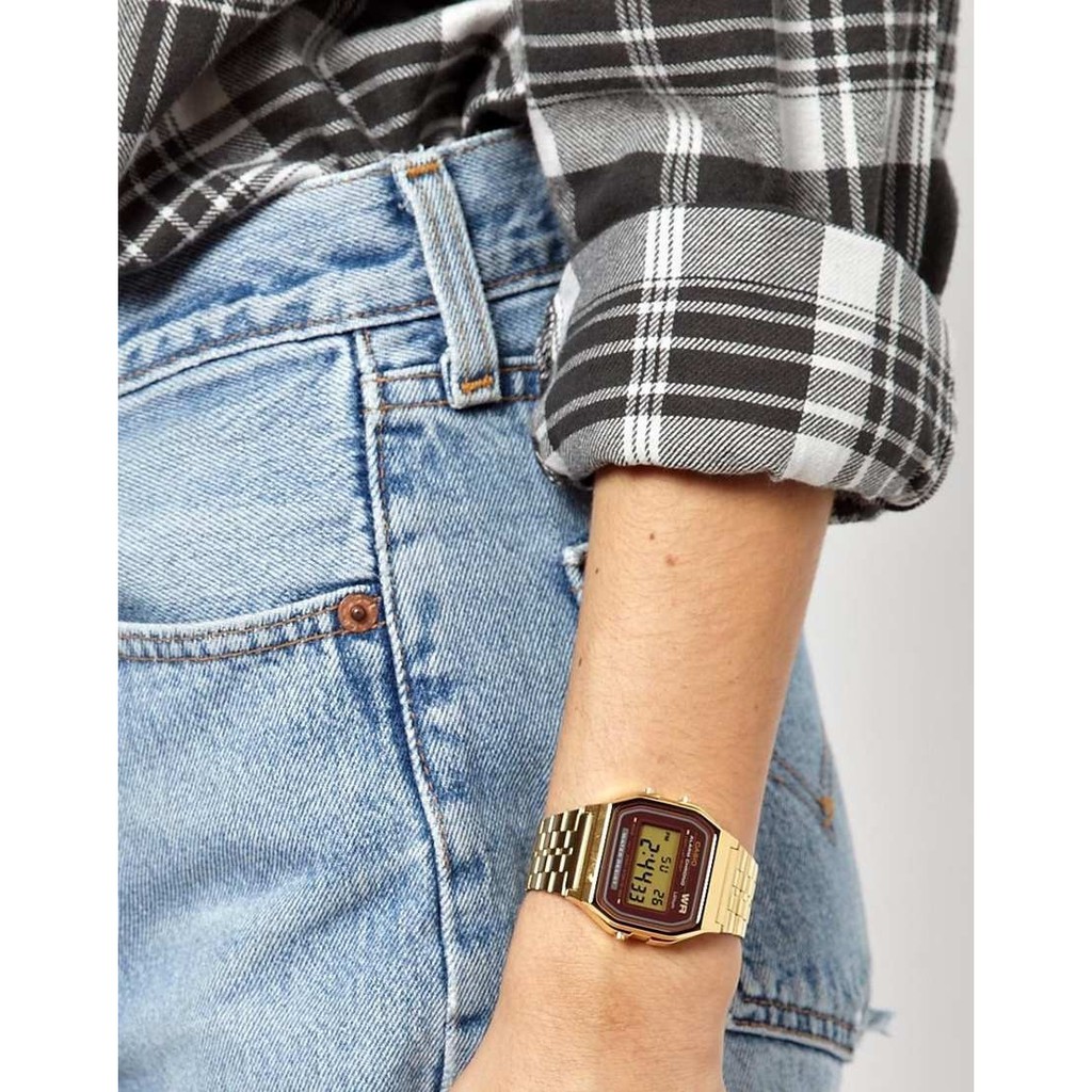 [Time Cruze] Casio A159 Vintage Adjustable Gold Tone Stainless Steel Digital Unisex Watch A159WGEA-5DF A159WGEA-5D