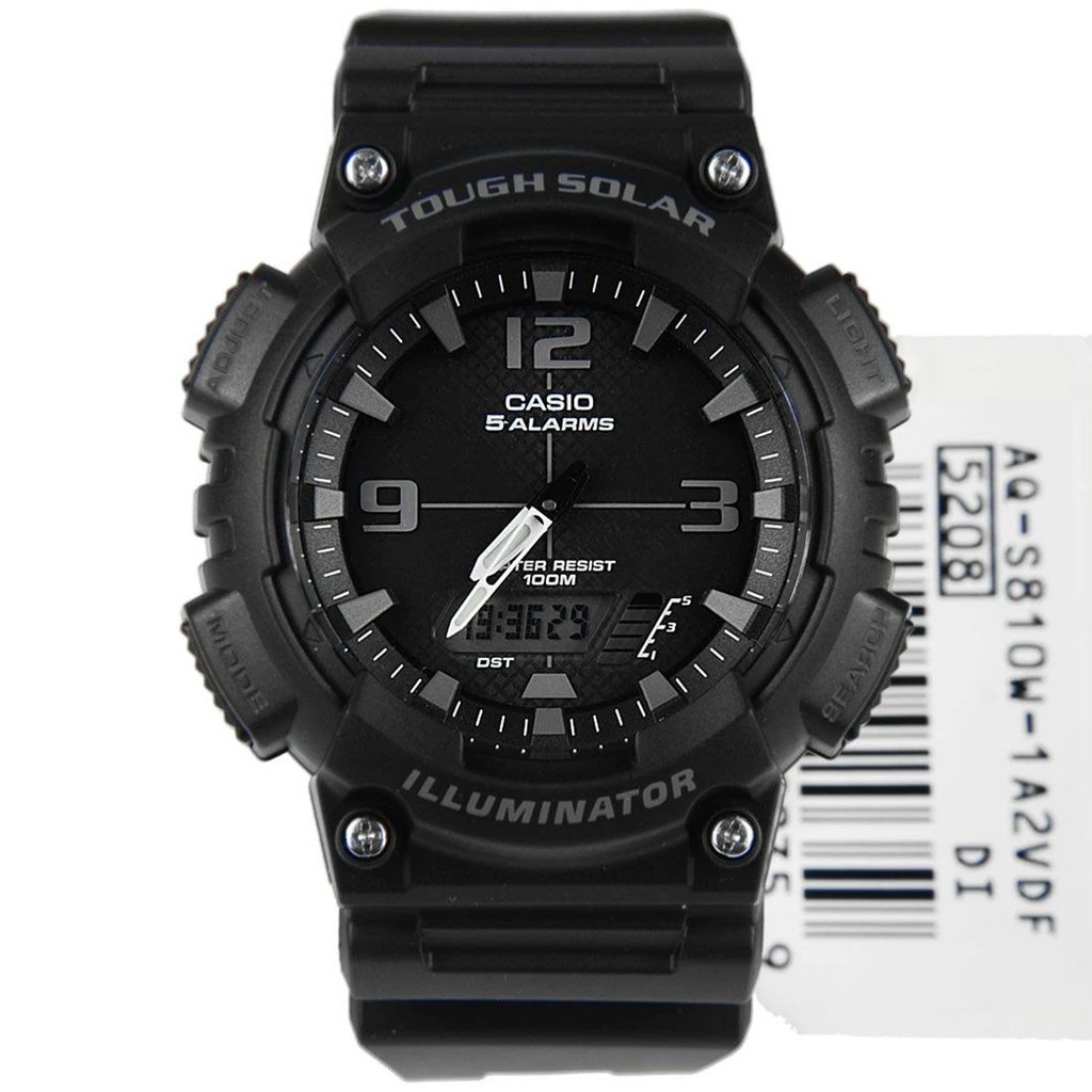 [Time Cruze] Casio AQ-S810 Solar Powered Analog Digital Sports Black Resin Men Watch AQ-S810W-1A2VDF AQ-S810W-1A2