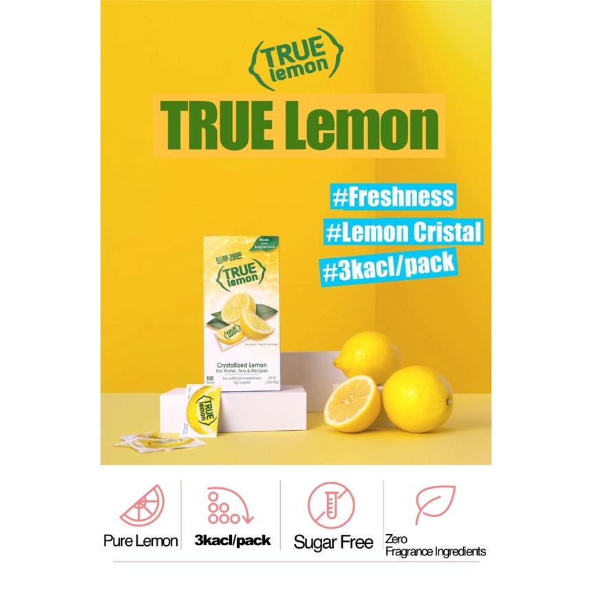 [True Lemon]Crystalized Pure Lemon Powder. Zero Calories for Water, Beverage & Recipes, Sugar free, 100% natural, Non GMO, Gluten Free, No artificial Sweeteners/Preservatives