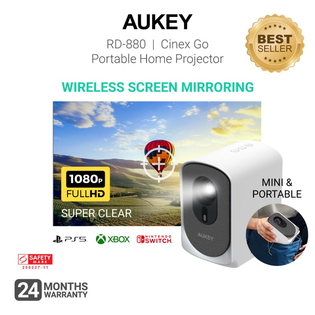 [UPGRADED] Aukey RD-880 Cinex Go MINI Portable Projector w 1080P Full HD & Screen Mirroring (24 Months Local Warranty)