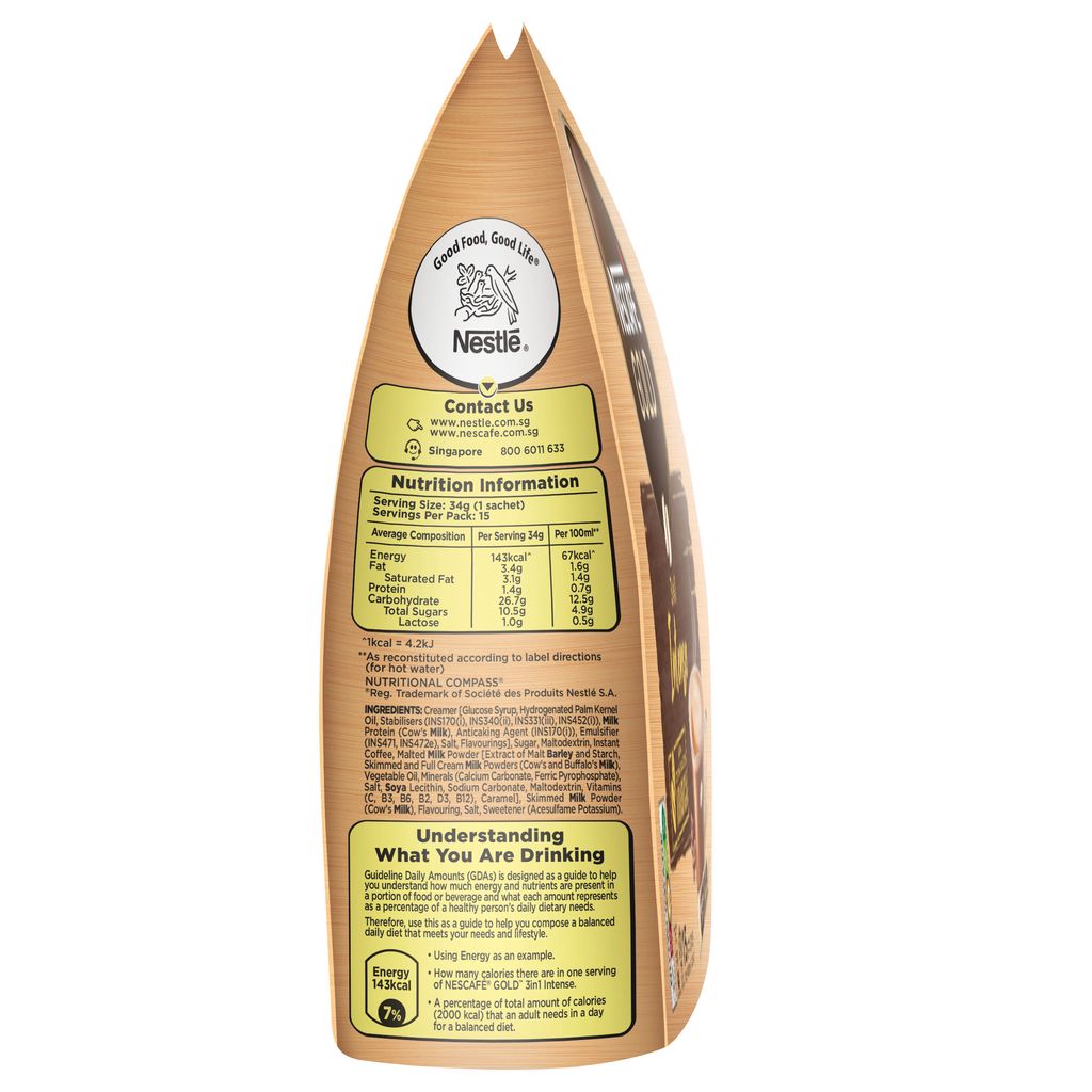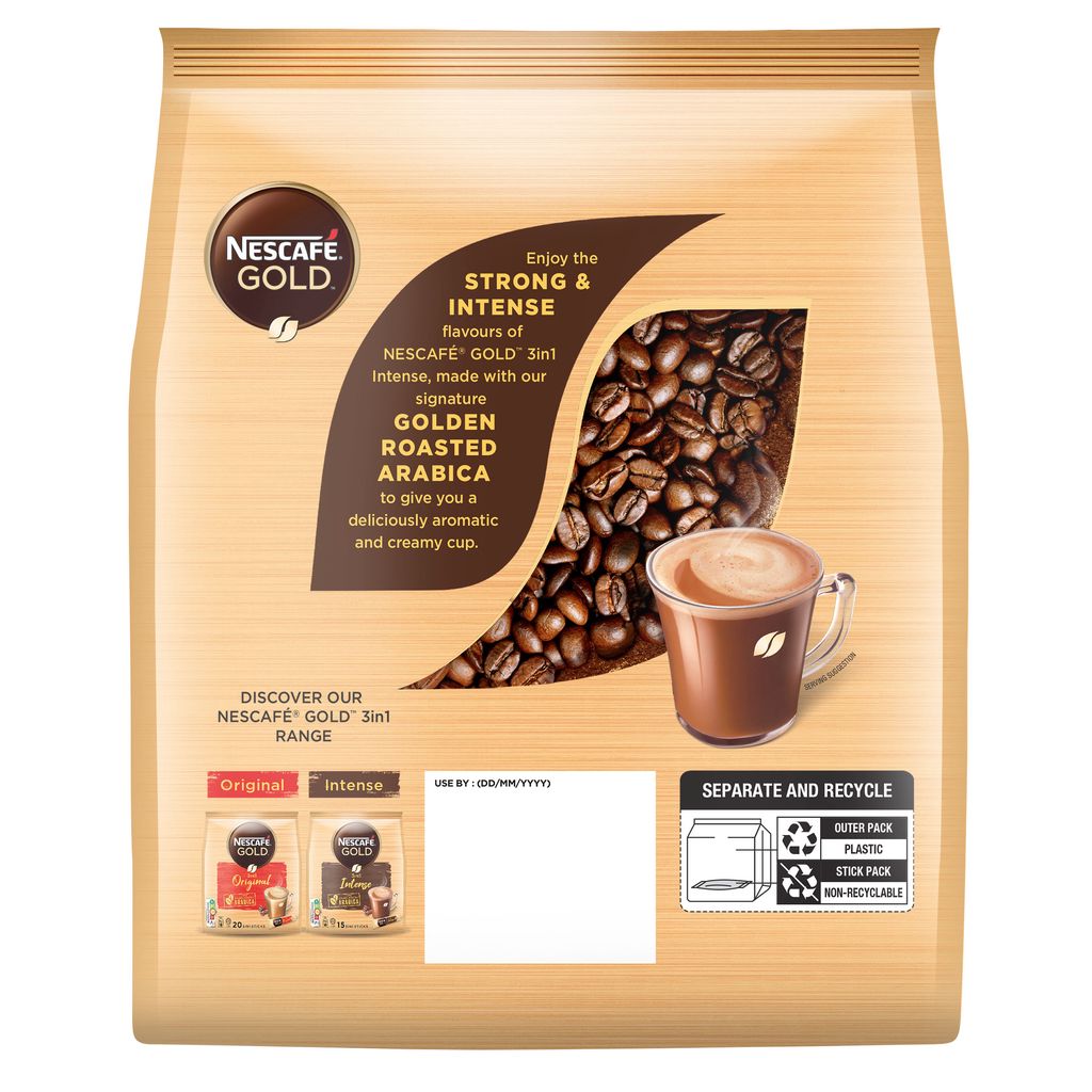 [VALUE PACK] Nescafe Gold 3in1 Intense (15 Sachets X 34g) + Free 2 Sticks