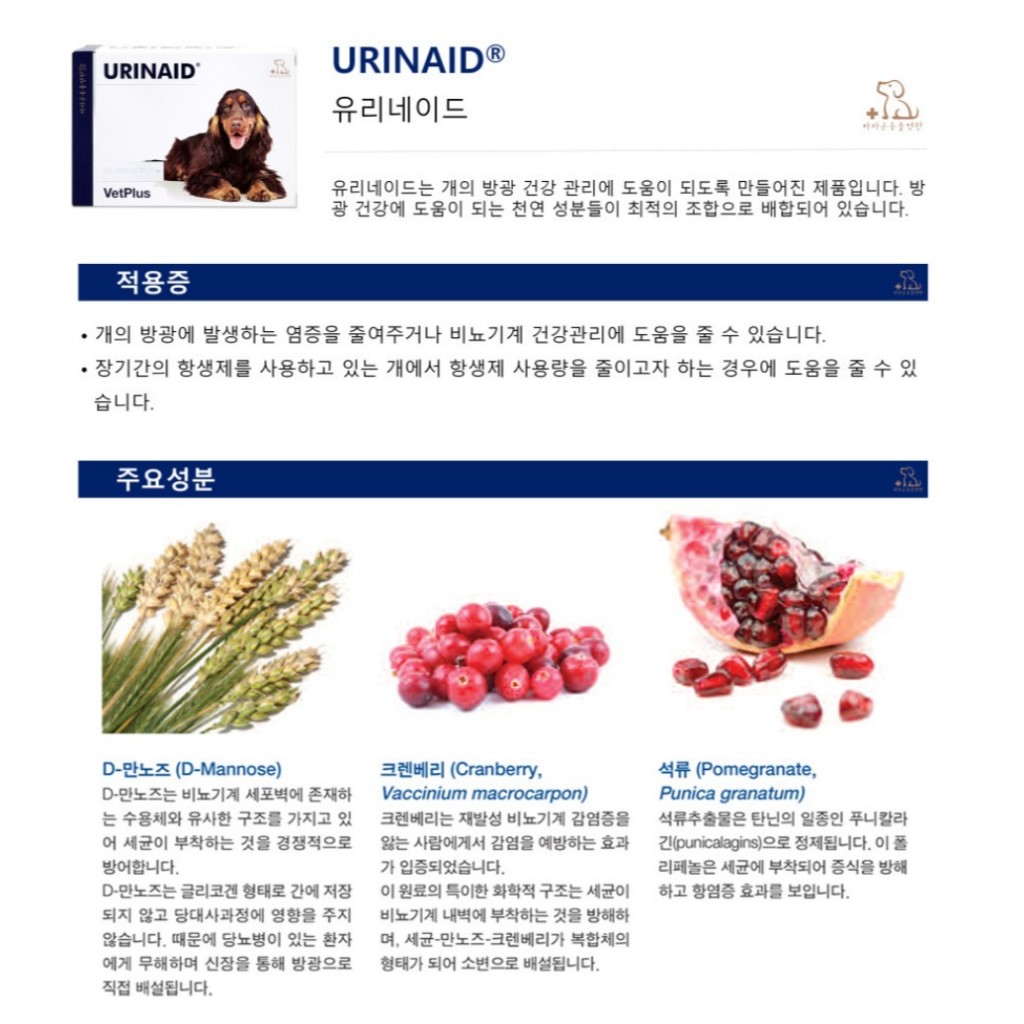 [VetPlus] URINAID Dog Urinary Care 60Tablets / Puppy Dogs Bladder Cystitis Management