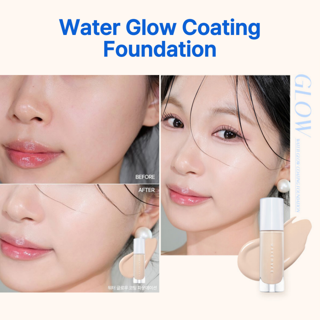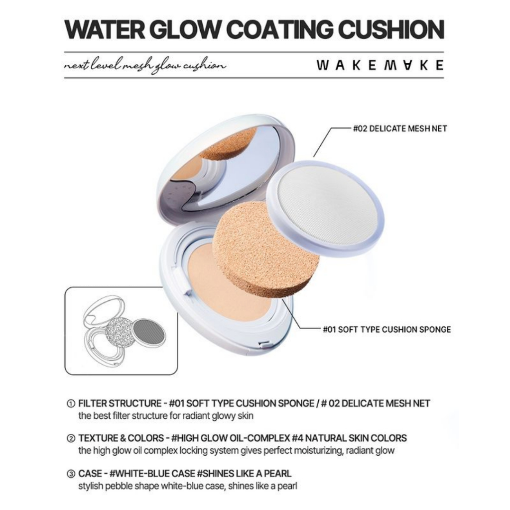 [WAKEMAKE] Water Glow Coating Foundation 30ml / Cushion 11g SPF 50+ PA++++ Air Cushion Long Lasting Facial Makeup Base Shades