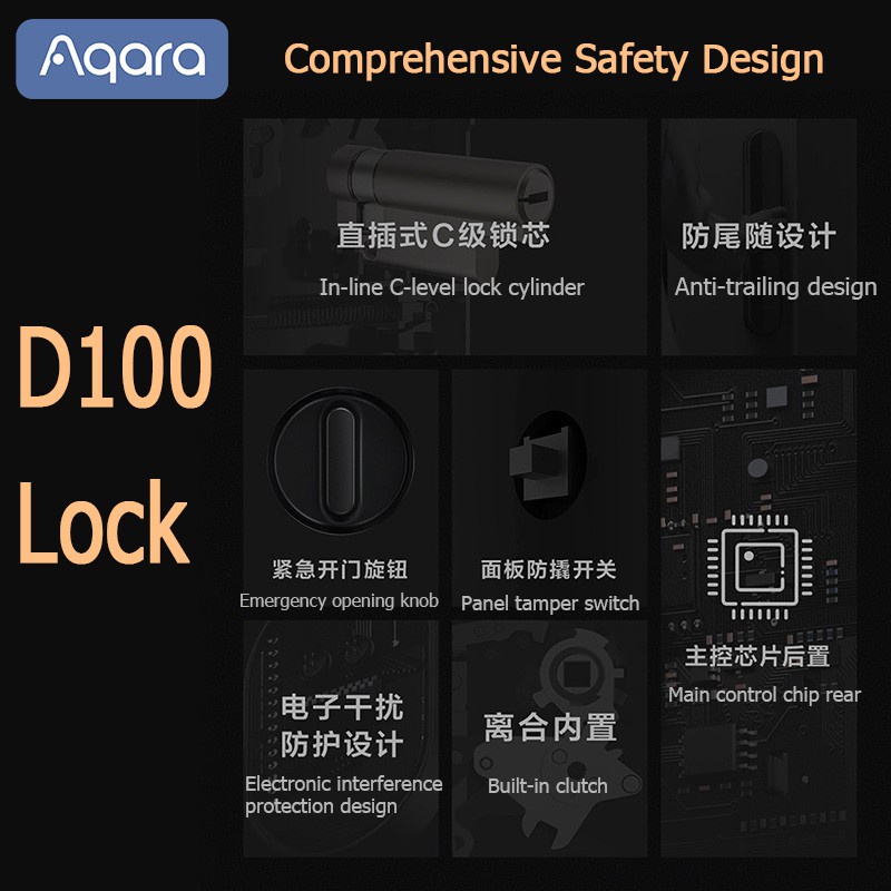 [WITHOUT INSTALLATION] Chinese Version Aqara Smart Lock D100 Automatic Push-Pull Lock Fingerprint Lock Electronic Lock