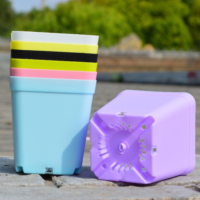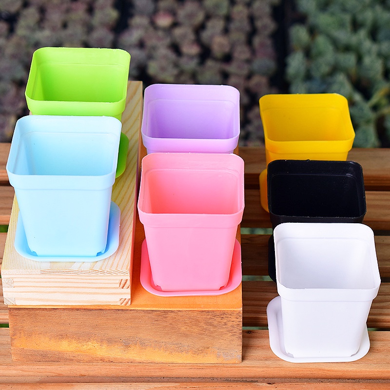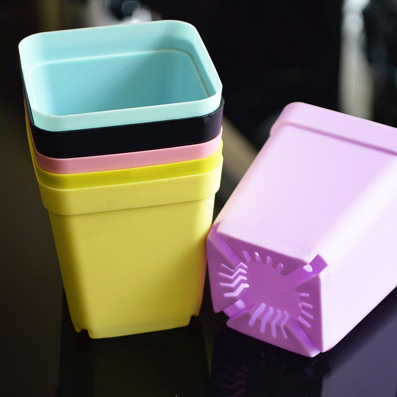 [ Wholesale Prices ] Candy Color Mini Plastic Flower Pots / Office Desktop Flowerpot /Eco-friendly Square Cactus Plant Pot /Unbreakable Plastic Nursery Pots for Succulent plants