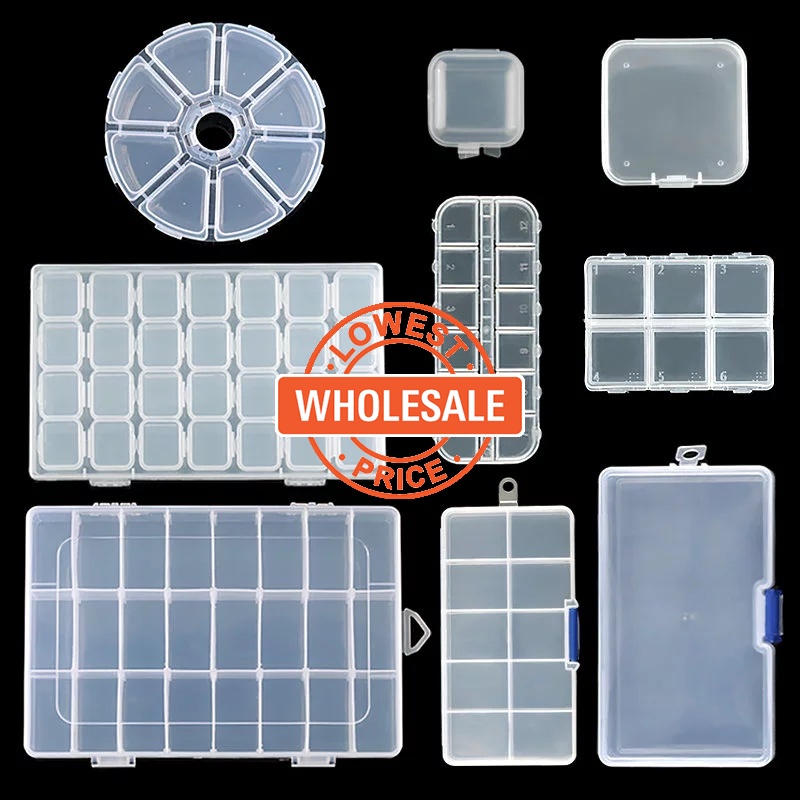 [ Wholesale Prices ]Various Sizes Plastic Jewelry Storage Box / Transparent Flip Container / Plastic Necklace Earrings Storage Boxes / Earplug Pill Box Nail Art Tool Organizer Case