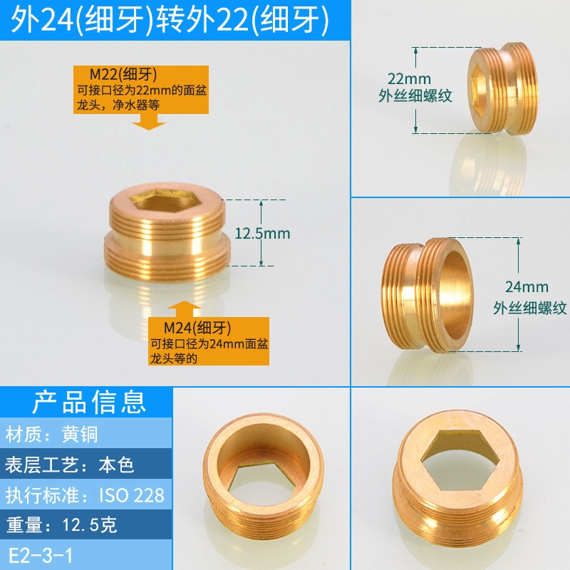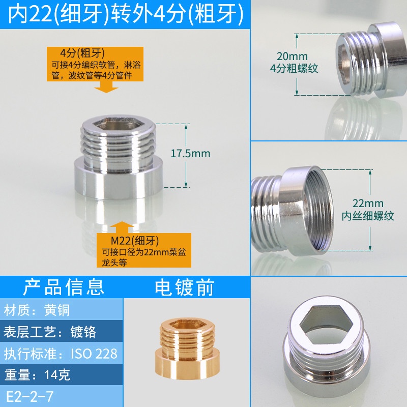 [XJK] Faucet Adapter Accessories Water Purifier Outer Thread Fine Thread to Inner Thread 4 Points Coarse Thread All Copper M20/22/24/28