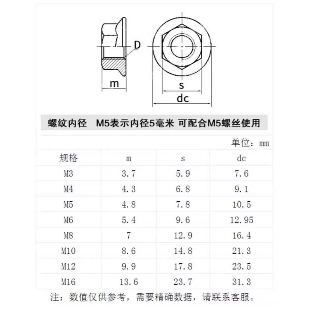 [XSP] 304 Stainless Steel Flange Hex Nut Thin/Negative Thread British American Anti-Locking Nut with Pad Anti-Slip Locking Screw Cap