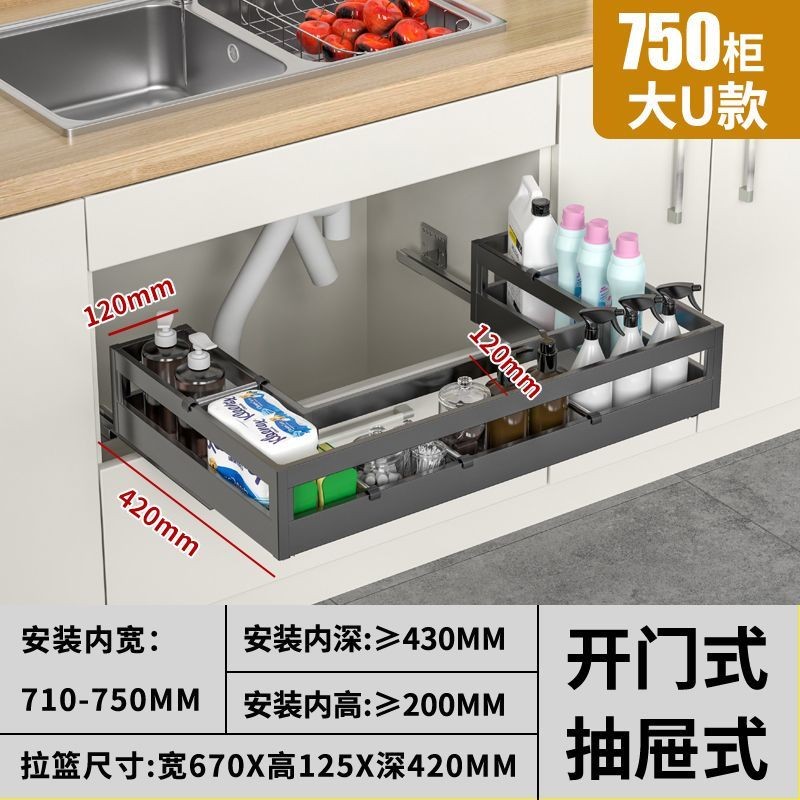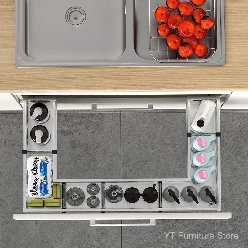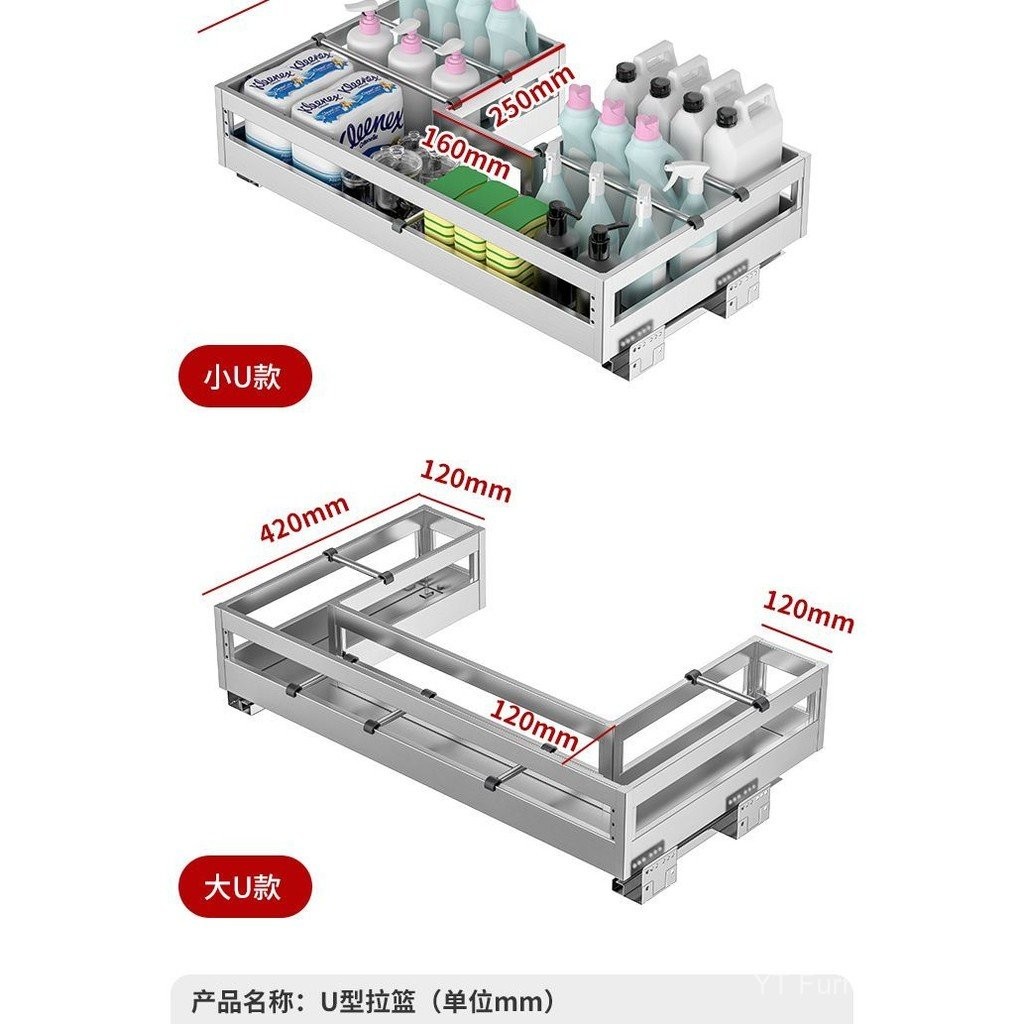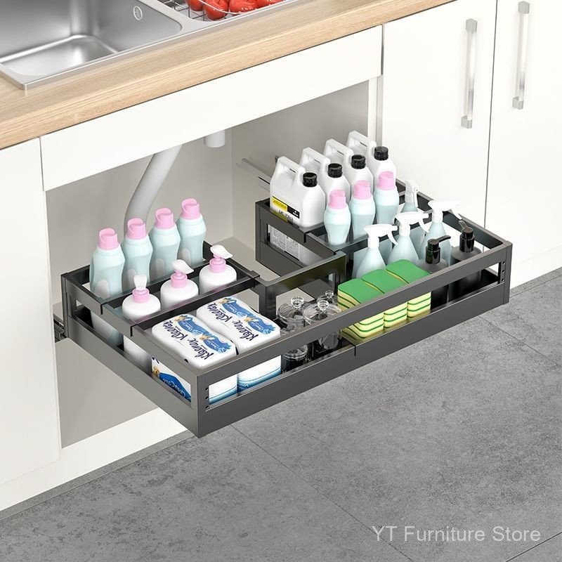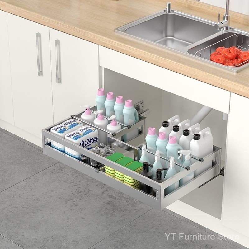 [YT]Kitchen Cabinet Under Sink Pull-Out Basket/304 Stainless Steel Storage Rack Custom Organizer Under Sink Storage
