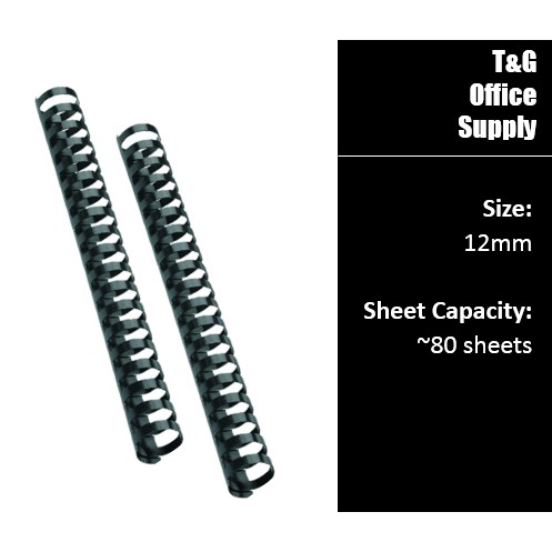 [All Size 6mm - 51mm] A4 Black Plastic Binding Comb (21 Rings)