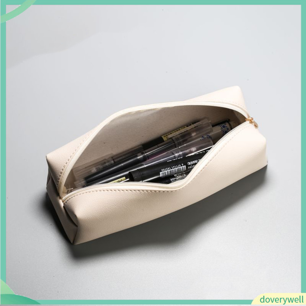 {doverywell} Aesthetic and Practical Pencil Box Pencil Pouch Stylish Faux Leather Pencil Case with Smooth Zipper Compact and Portable Stationery Pouch for Home and School Use
