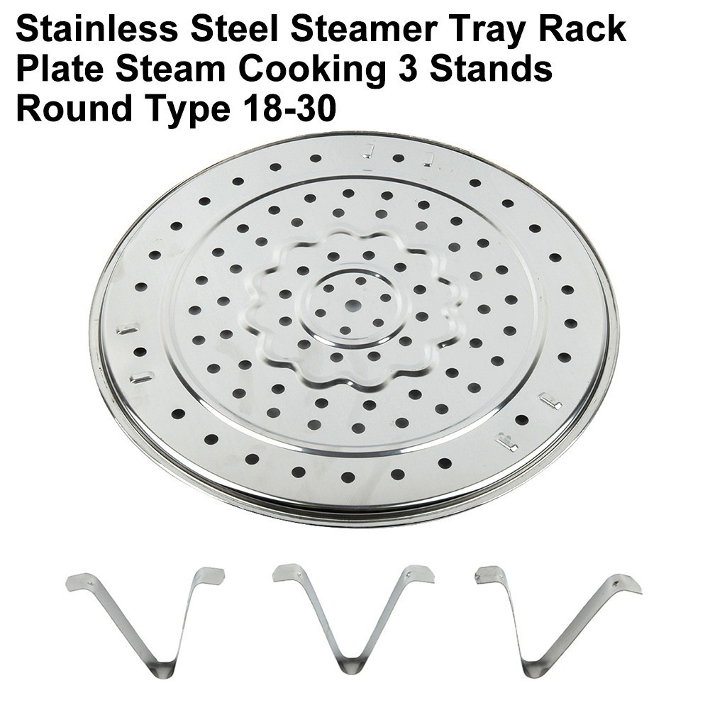 <ever> Stainless Steel Steamer Tray Rack Plate Steam Cooking 3 Stands Round Type 18-30