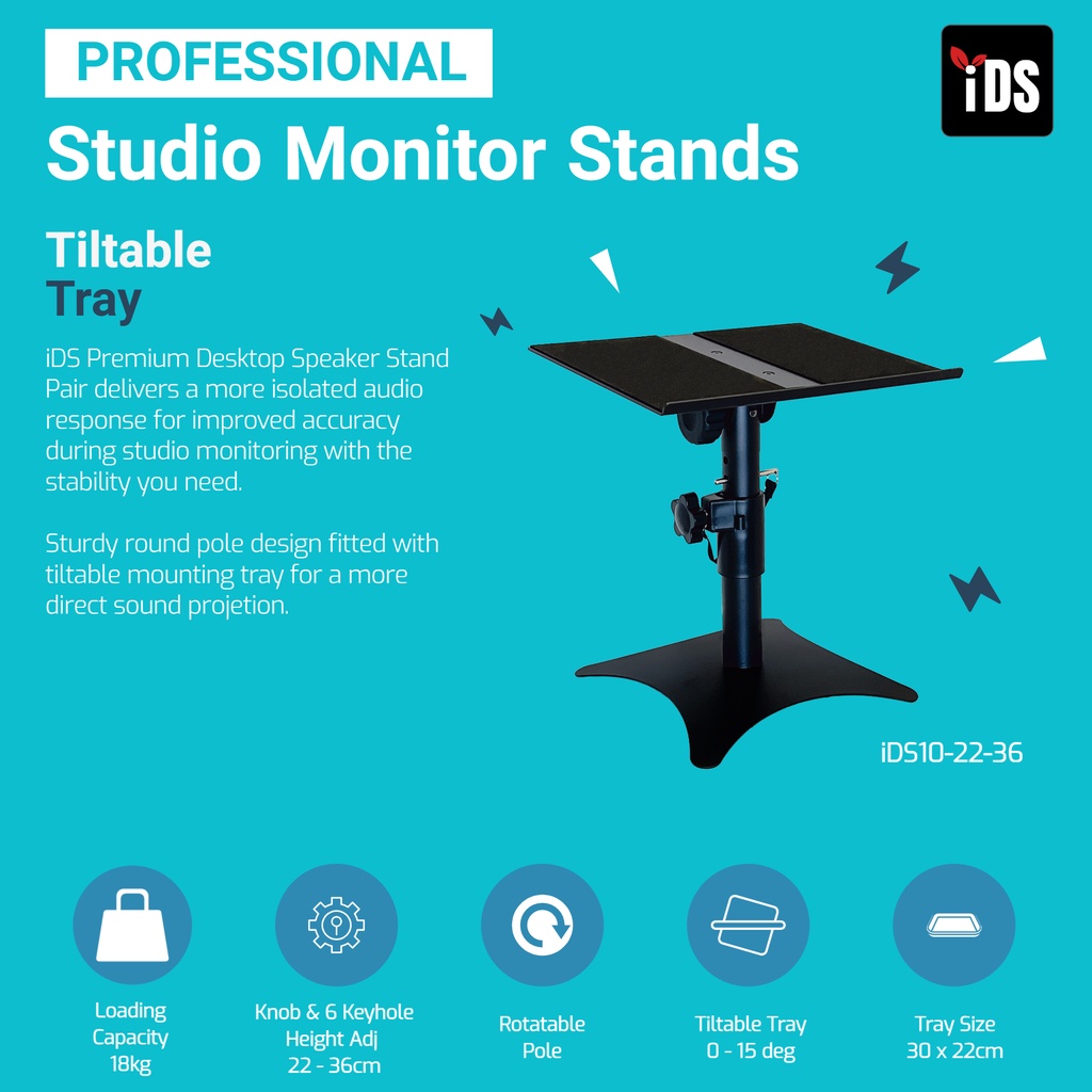 [iDS] Premium Tilting Studio Monitor Speaker Stand for Table and Floor, Hifi Speaker Computer Speakers Bookshelf Speaker