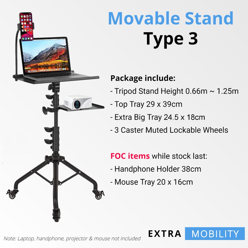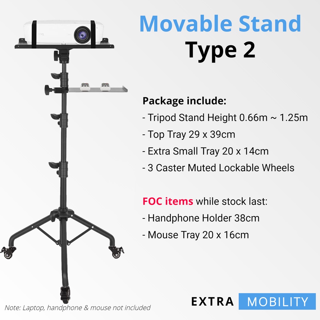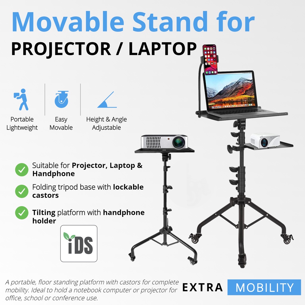 [iDS] Universal Projector Stand Bracket with Wheels Projector Tripod Stand Trolley Laptop Stand with Lockable Wheels