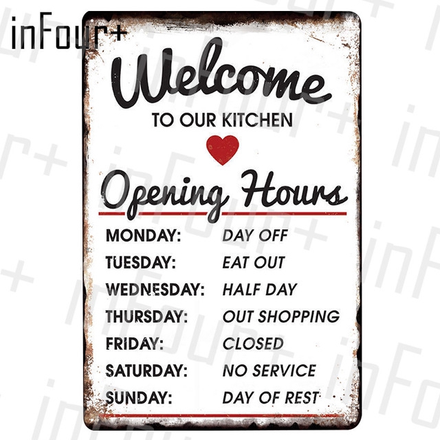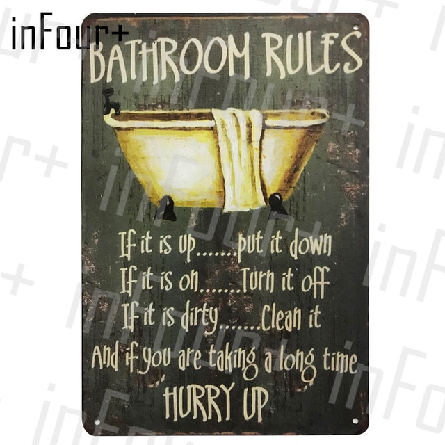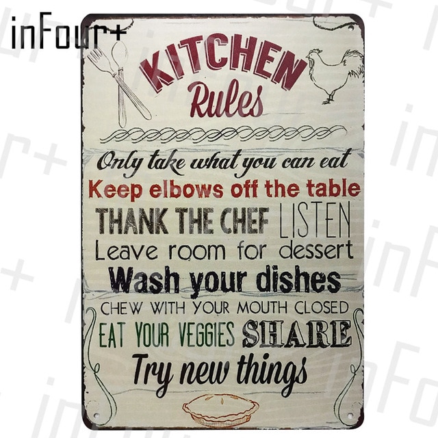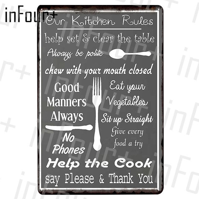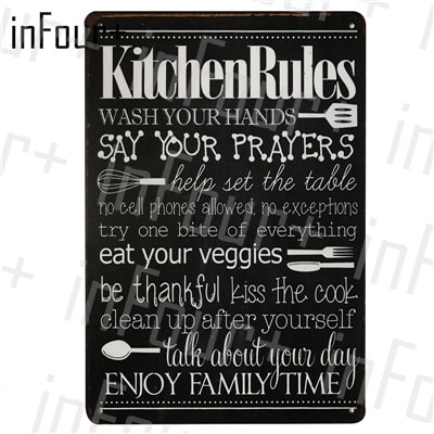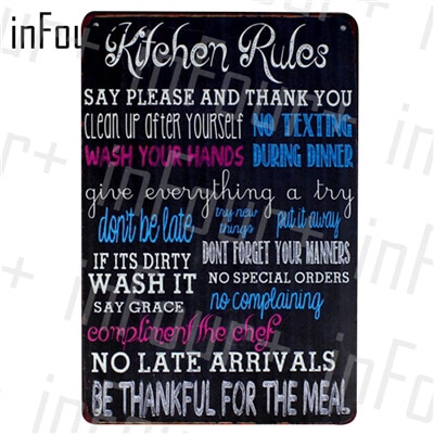 [inFour ] Kitchen Rules Plaque Metal Vintage Bathroom Rules Metal Sign Family Rules Tin Sign Kitchen Opening Hoers Metal Poster
