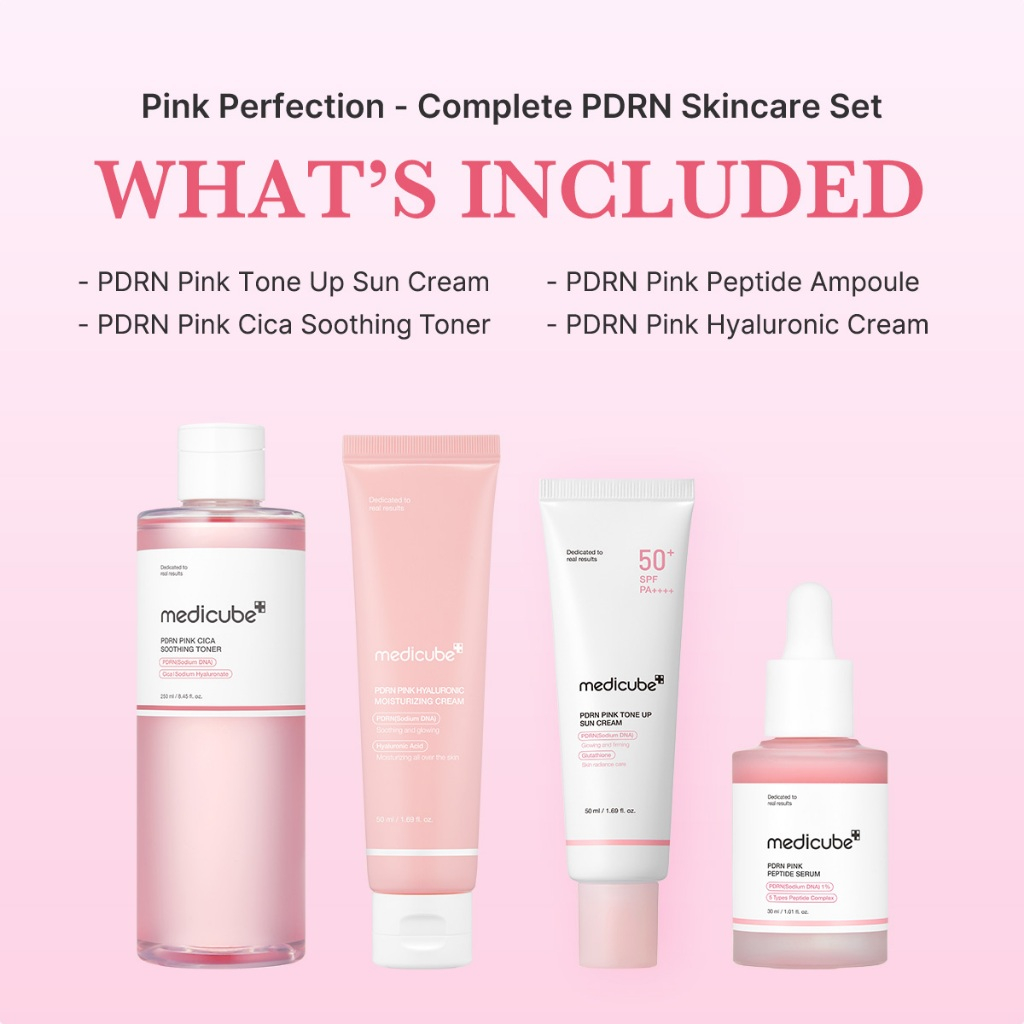 [medicube official] Ultimate Glow Pink Perfection Set - PDRN Ampoule, PDRN Toner, PDRN Cream, PDRN Sun Cream