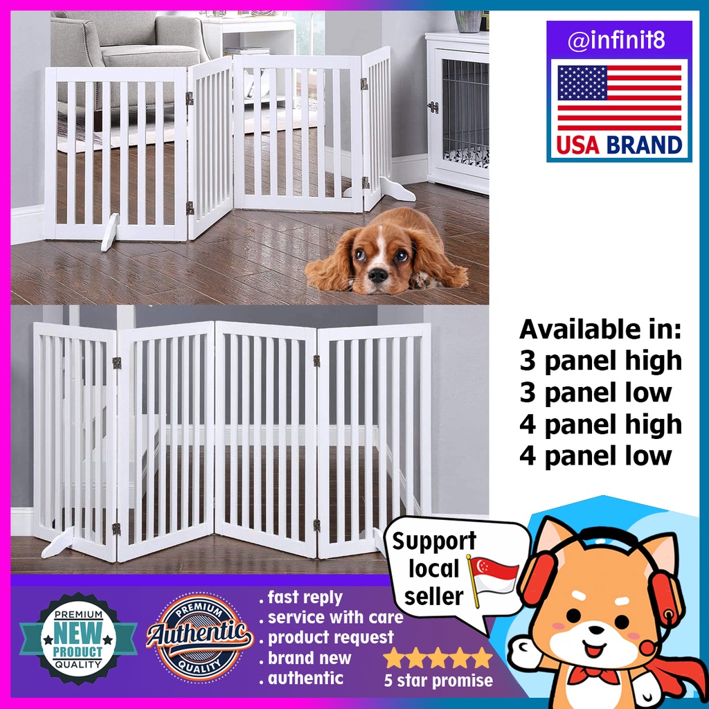 [sg stock-USA brand] Freestanding Foldable Wooden Dog Pet Gate w 2Pcs Support Feet Barrier fence Stairs etc