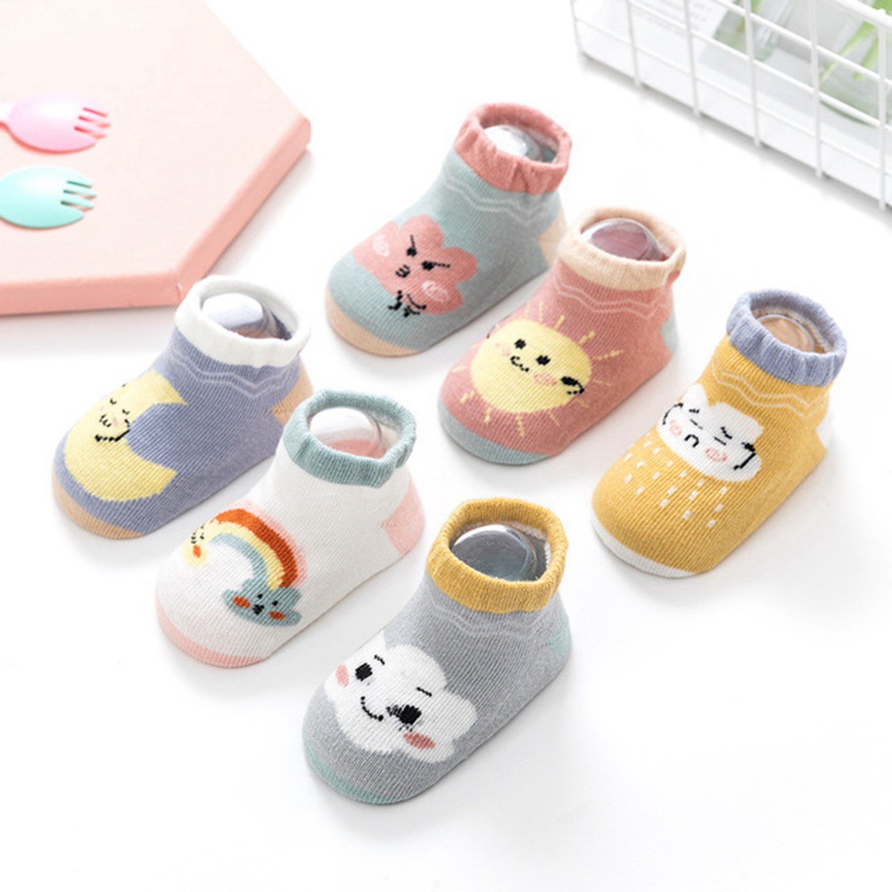 0-3Yrs Children's Anti-slip Socks Rainbow White Socks for Baby Girl Weather Pattern Sock