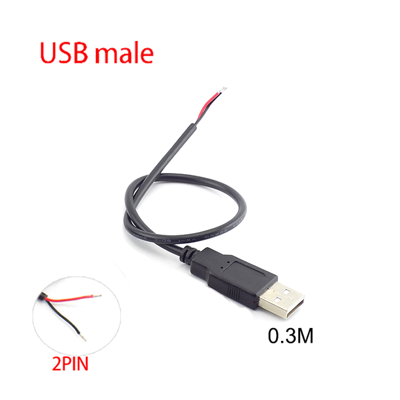 0.3m USB Cable Connector Male Female 4 Pin Wire Data Extension Cord 2 Pin Power Supply for DIY 5V Adapter Charging