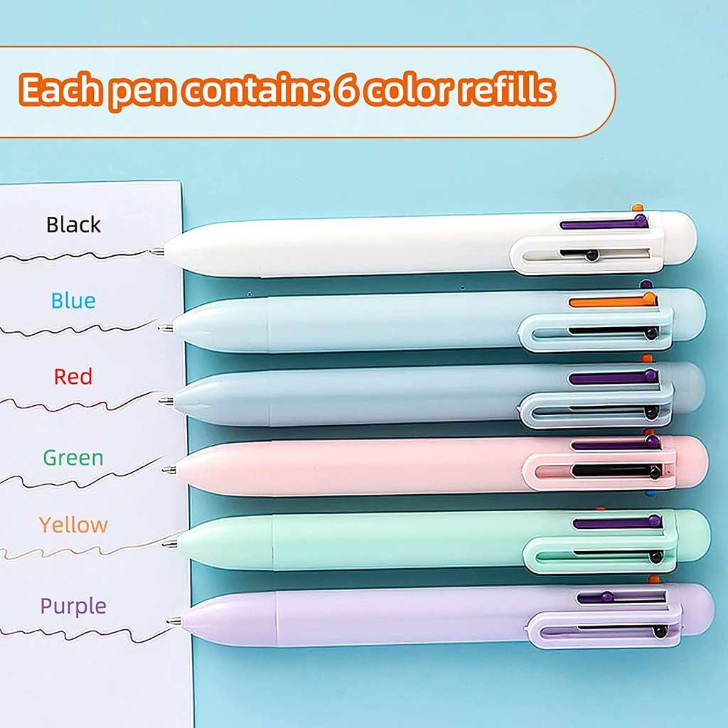 0.5mm 6-in-1 Multicolor Ballpoint Pen, 6-Color Retractable Fine Point Pens for Office School Supplies Students Kids Nurses Gift