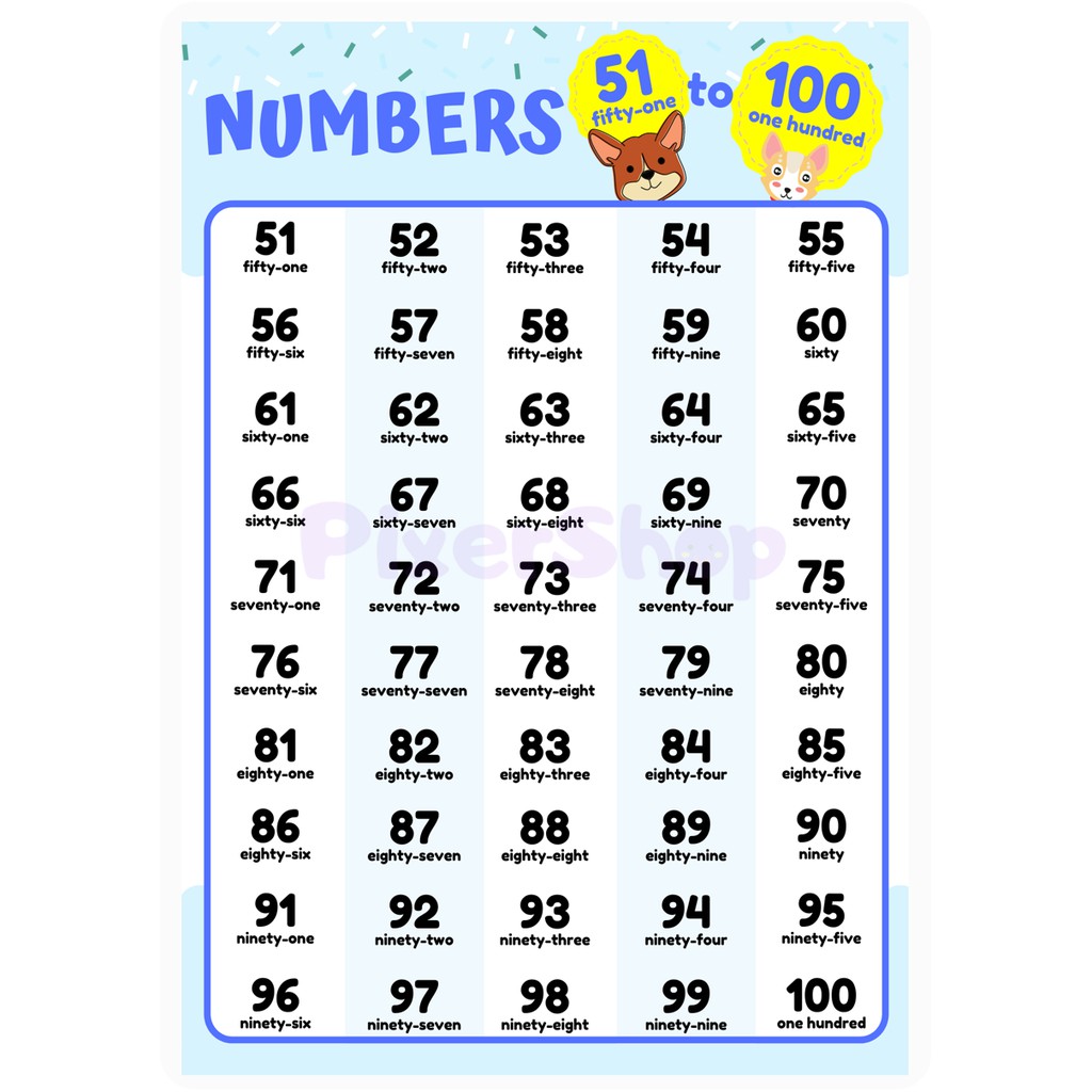 1-100 Number Word Chart/ Laminated Chart/ Educational Poster