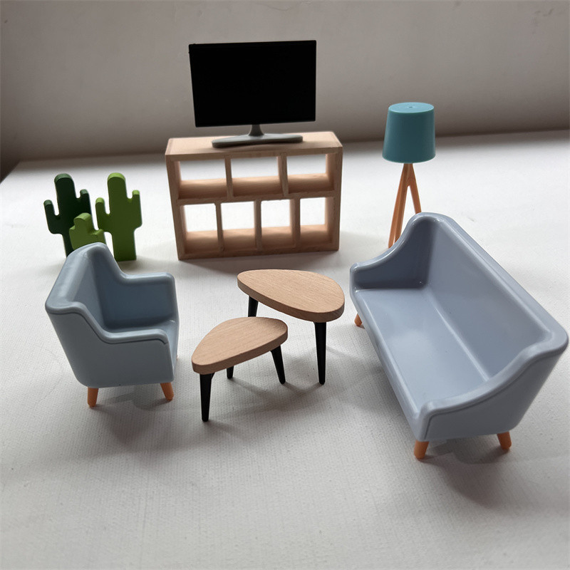 1/12 Scale Dollhouse Furniture Accessories Miniature Sofa & TV Cabinet & Table Set & Lamp & Decorations for Modern Dollhouse Living Room
