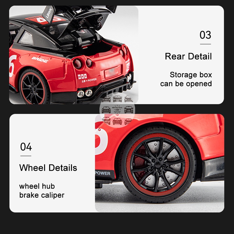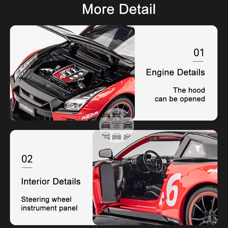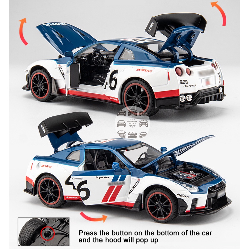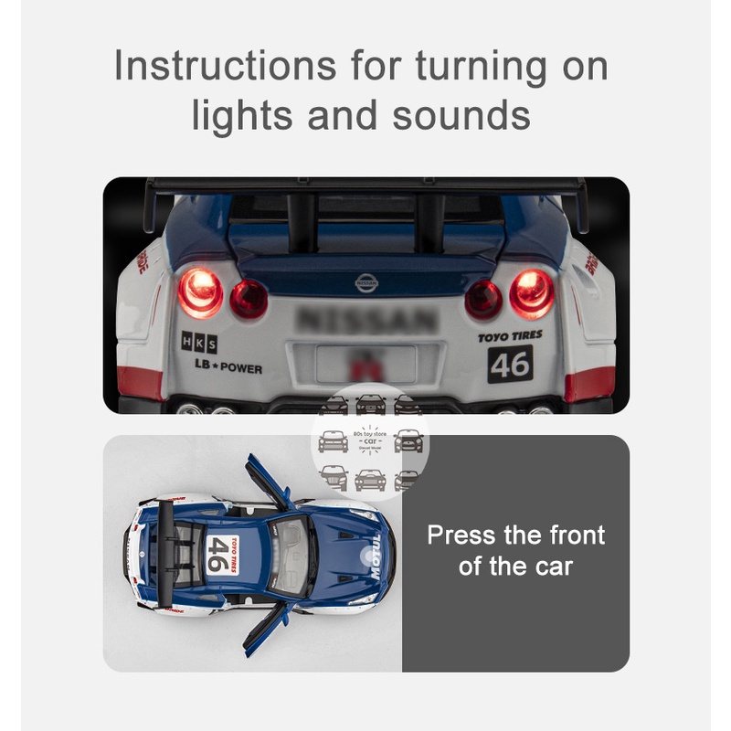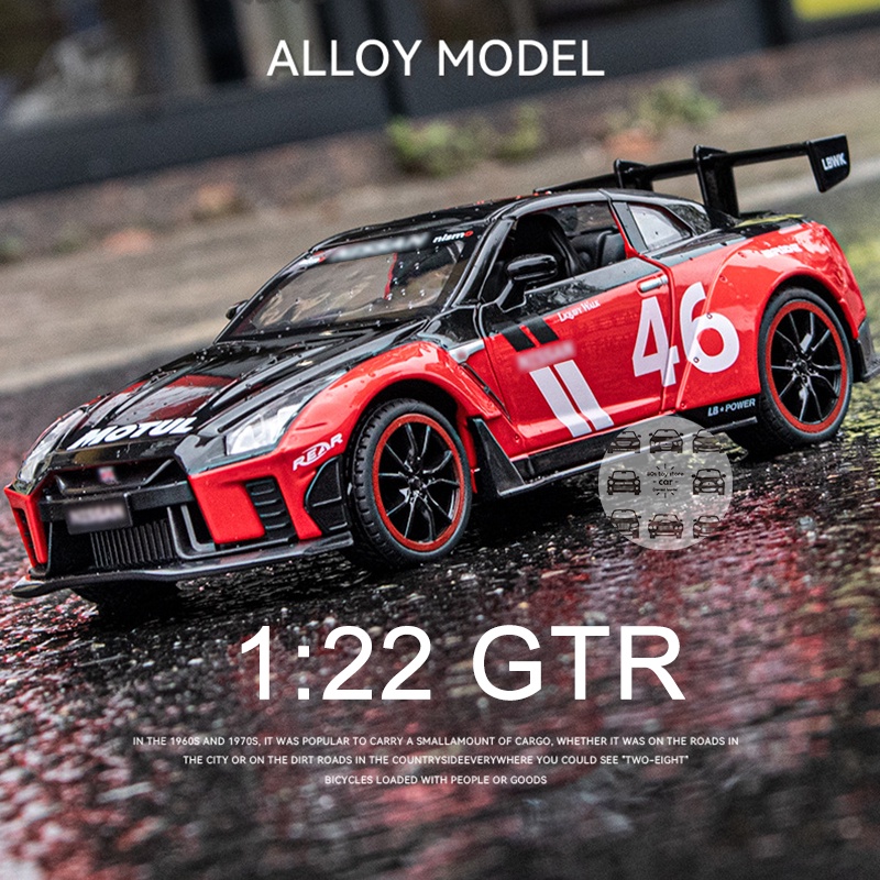 1:22 Nissan GTR Track Racing Edition Car Models Alloy Diecast Toy Vehicle Doors Openable Auto Truck With Sound and Light