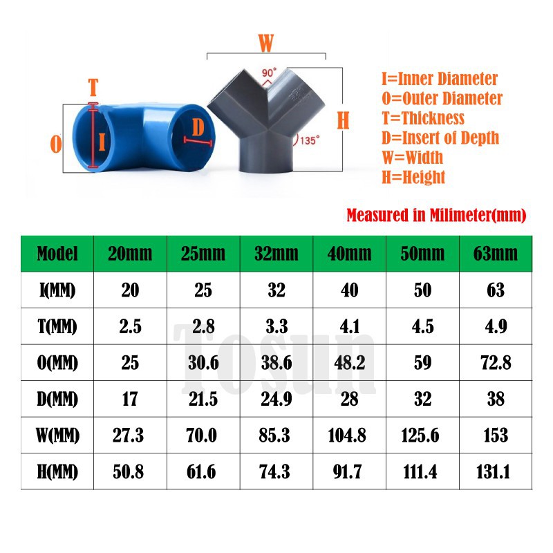 1/2Pcs PVC (20-63mm Inner Diameter) PIPE JOINT FITTING Y TYPE CONNECTOR DIY ART 3 WAY