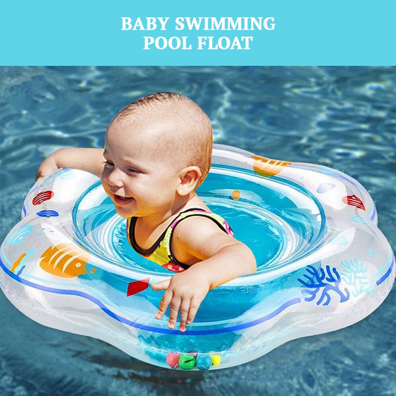 1-3 YEARS Baby Swim Float Seat Inflatable Infant Swimming Pool Rings Double Leak-Proof Train Safety With Colored Bells