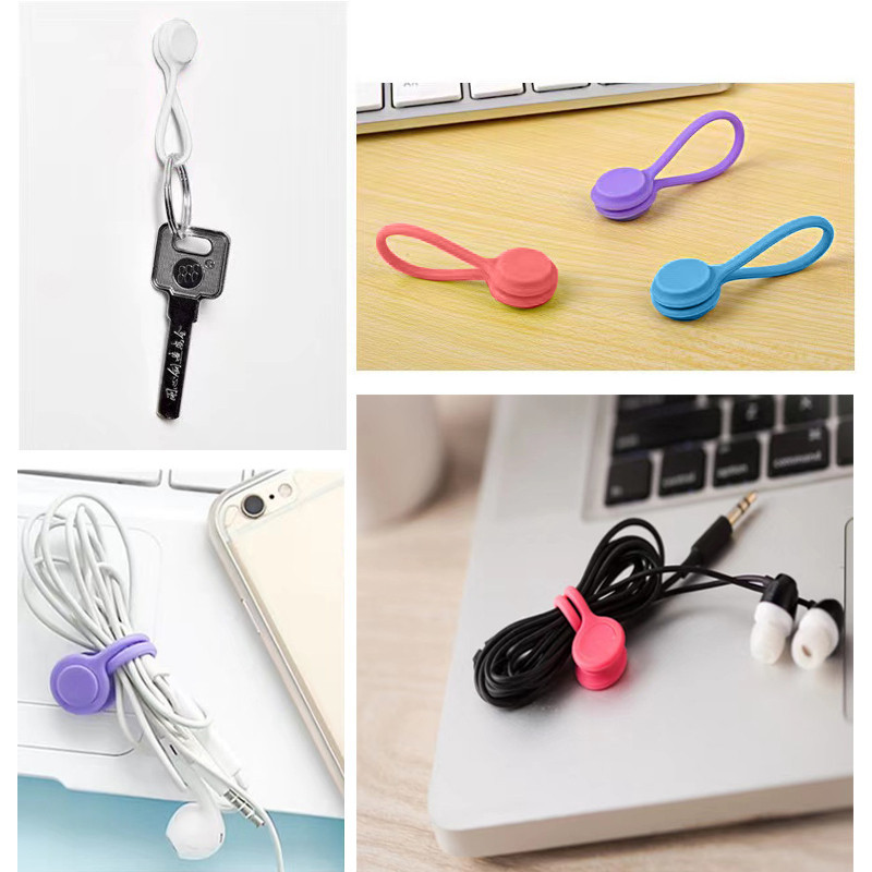 1/4 piece magnetic silicone cable manager clip headphone cable organizer USB charging cable wire management multi-color zip ties for organizing and tying