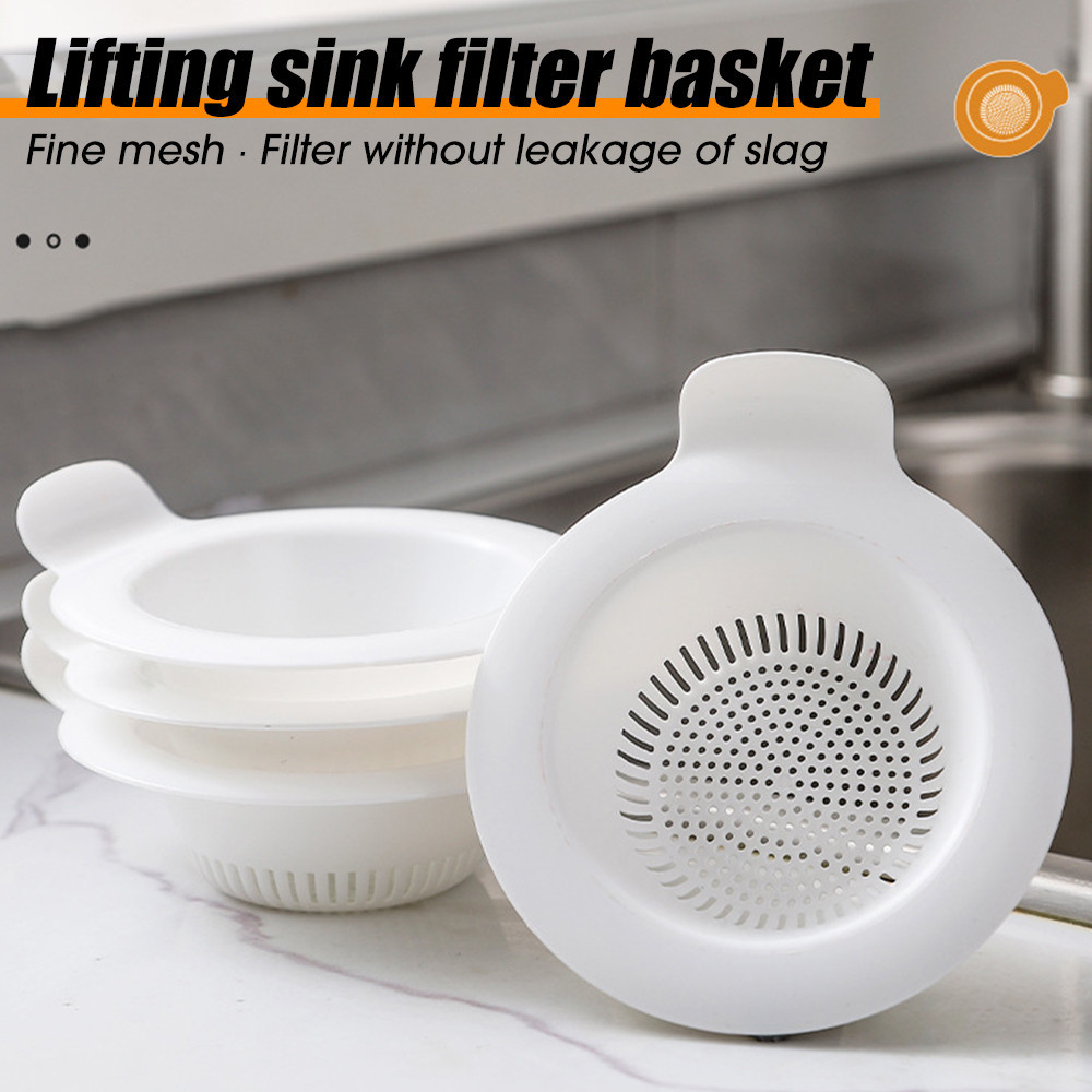 1/5Pcs Liftable Sink Strainer - Plastic Basin Filter - Plastic Sink Filter Basket - Mesh Strainer - For Kitchen Bathroom Floor Washbasin Drains - White Anti-blocking