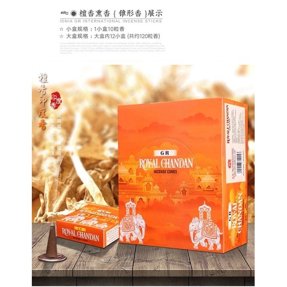 1 Box of Sandalwood Indian Incense Cones (12 small boxes = 120 cones)