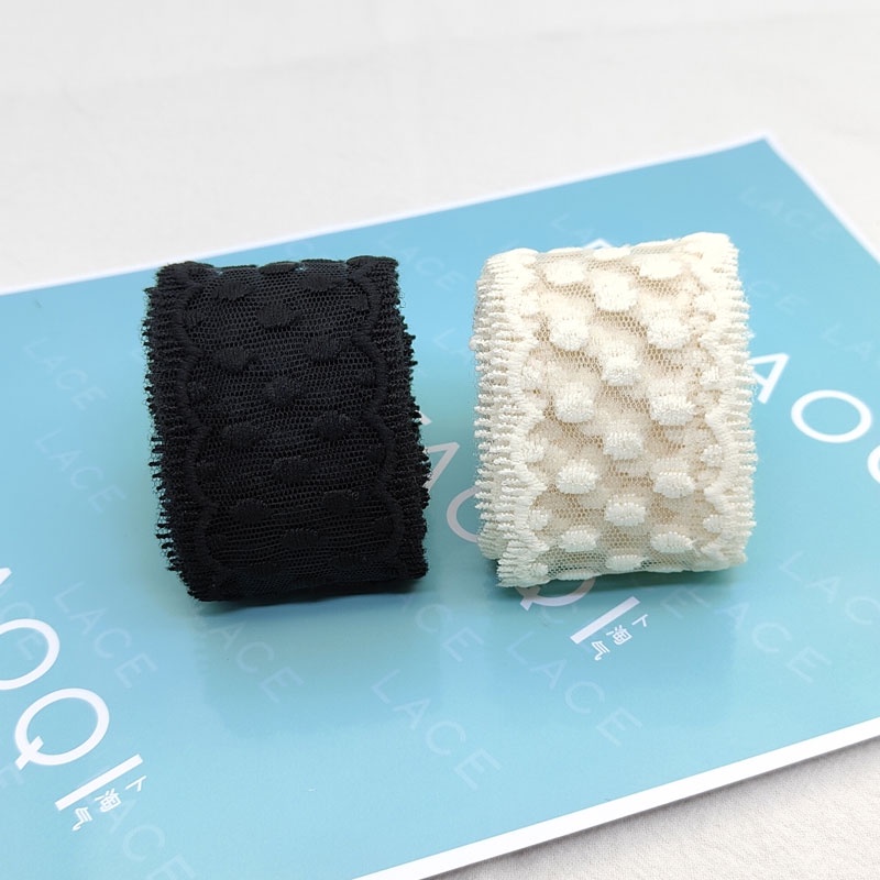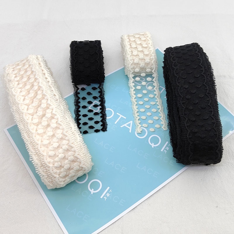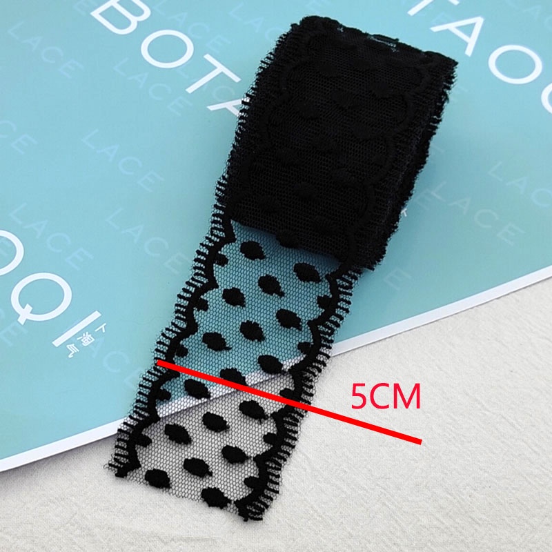 1 Meter Lace For Crafts 5cm Black & White DIY lace Trim Fabric For Sewing Bow Tie Wedding Dress Embroidery Polka Dots Ribbon