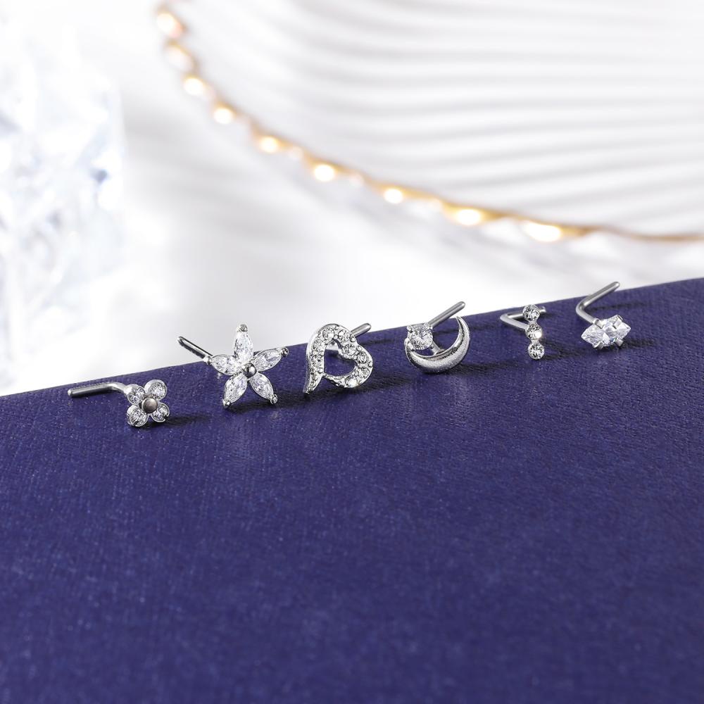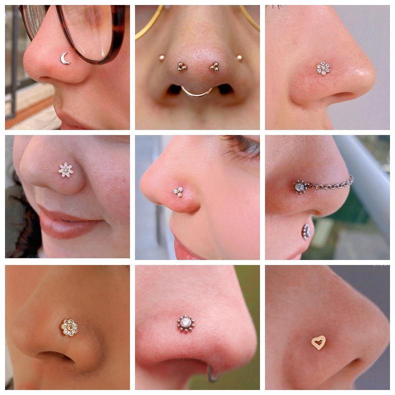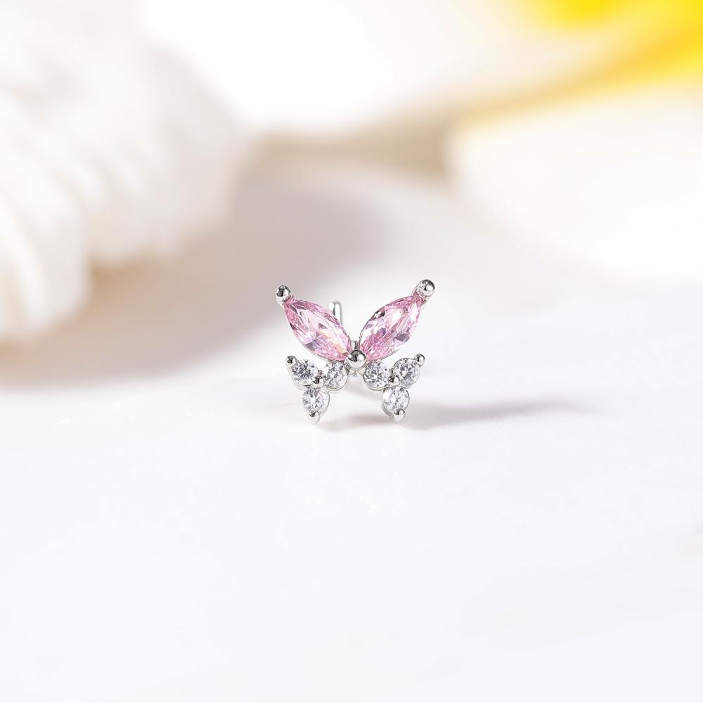 1 PC Butterfly Devil Eye Nose Piercing Stainless Steel Cute Cat Nostril Piercings Flower Moon Pink Crystal Nose Studs